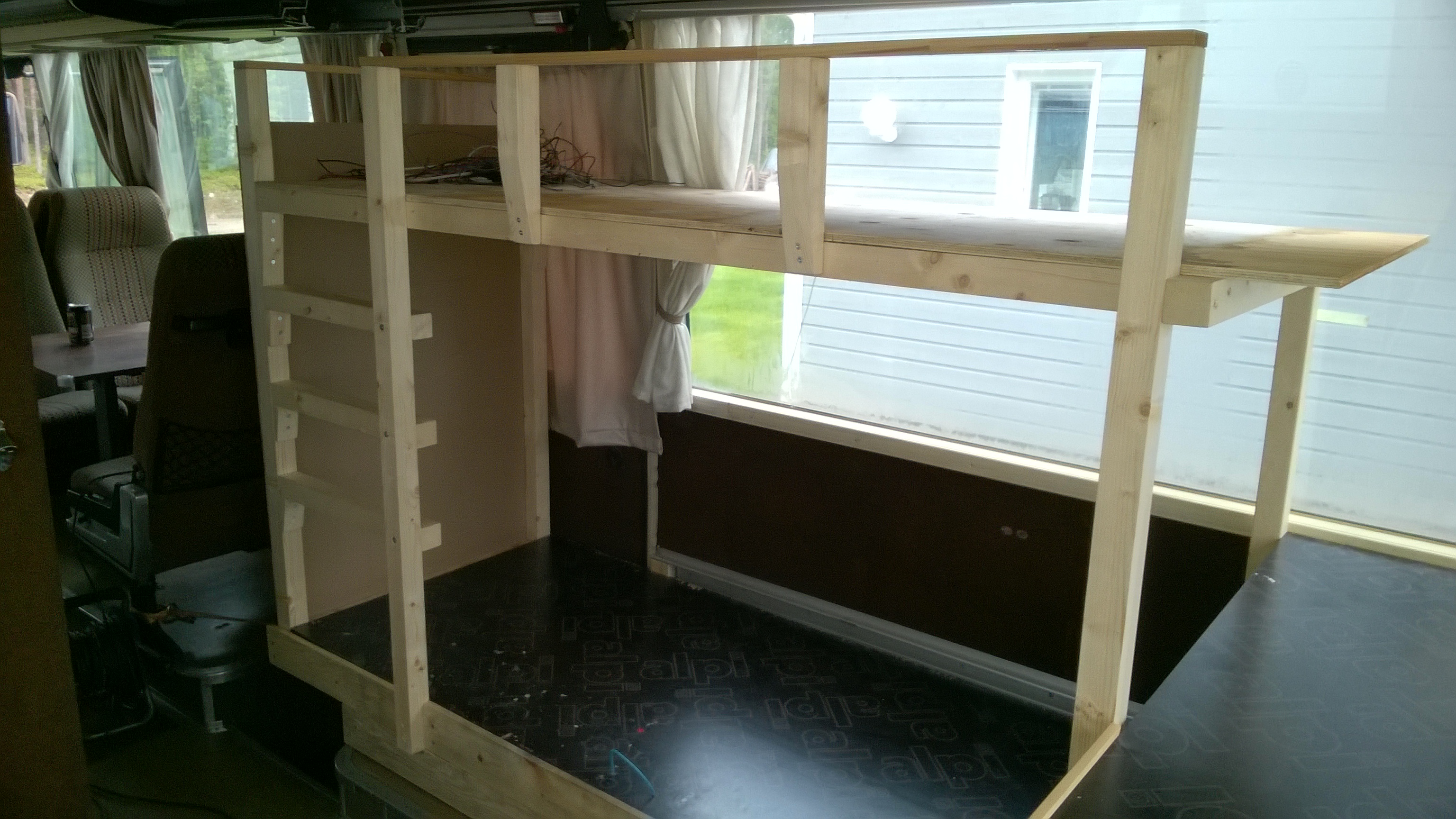 Noh niin... Viikonloppu vierähti kumman nopeaan. Jotakin sentään sain aikaiseksi. Sängyt jäi aukeaviksi, niin pääsee kaikkiin luukkuihin vielä käsiksi hyvin. Seuraavaksi vähän valoja laittelemaan. Verhot lähti pesuun