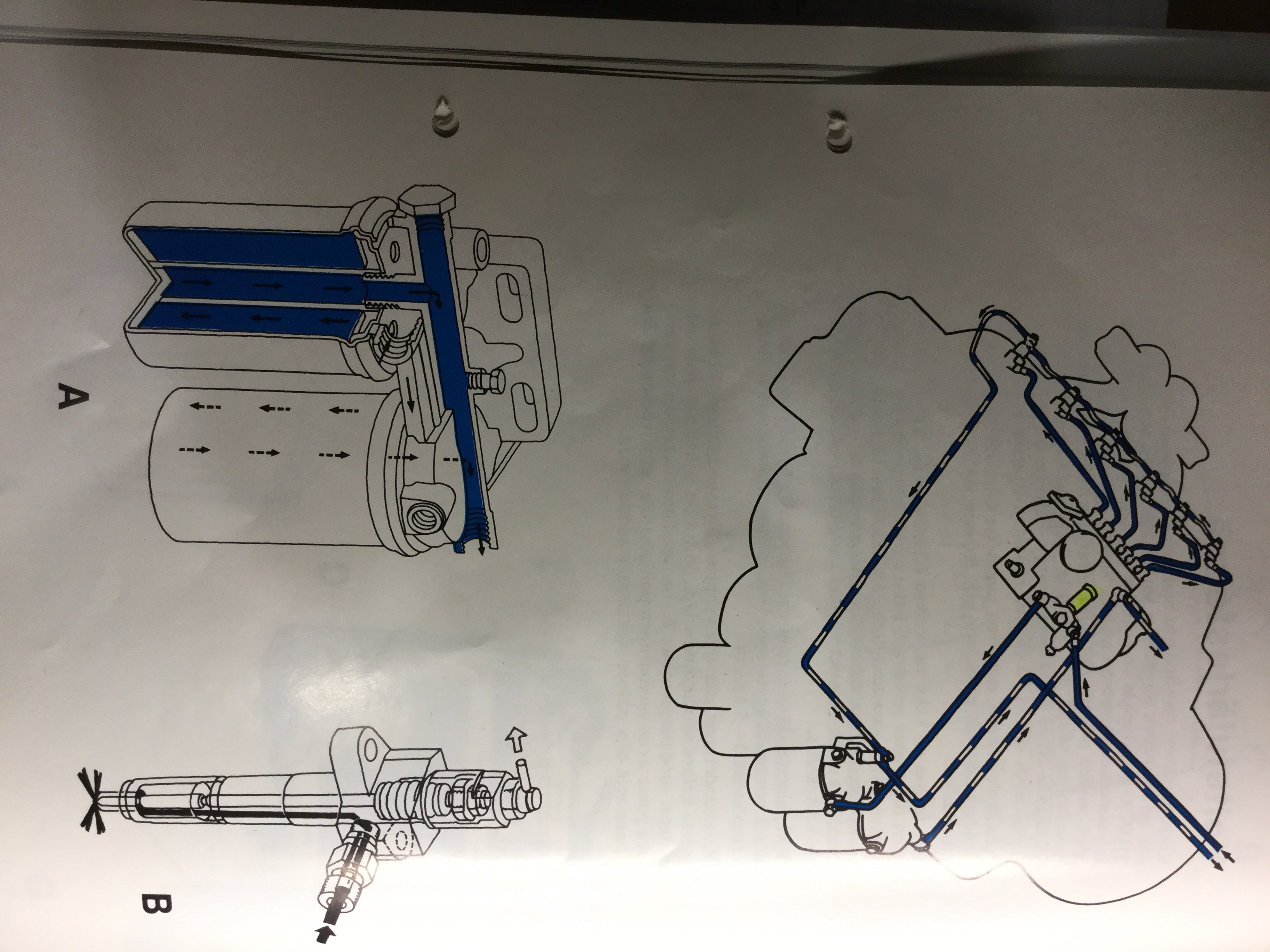 Tuossa polttoainejärjestelmä kuvattuna ( keltainen on käsipumppu)
