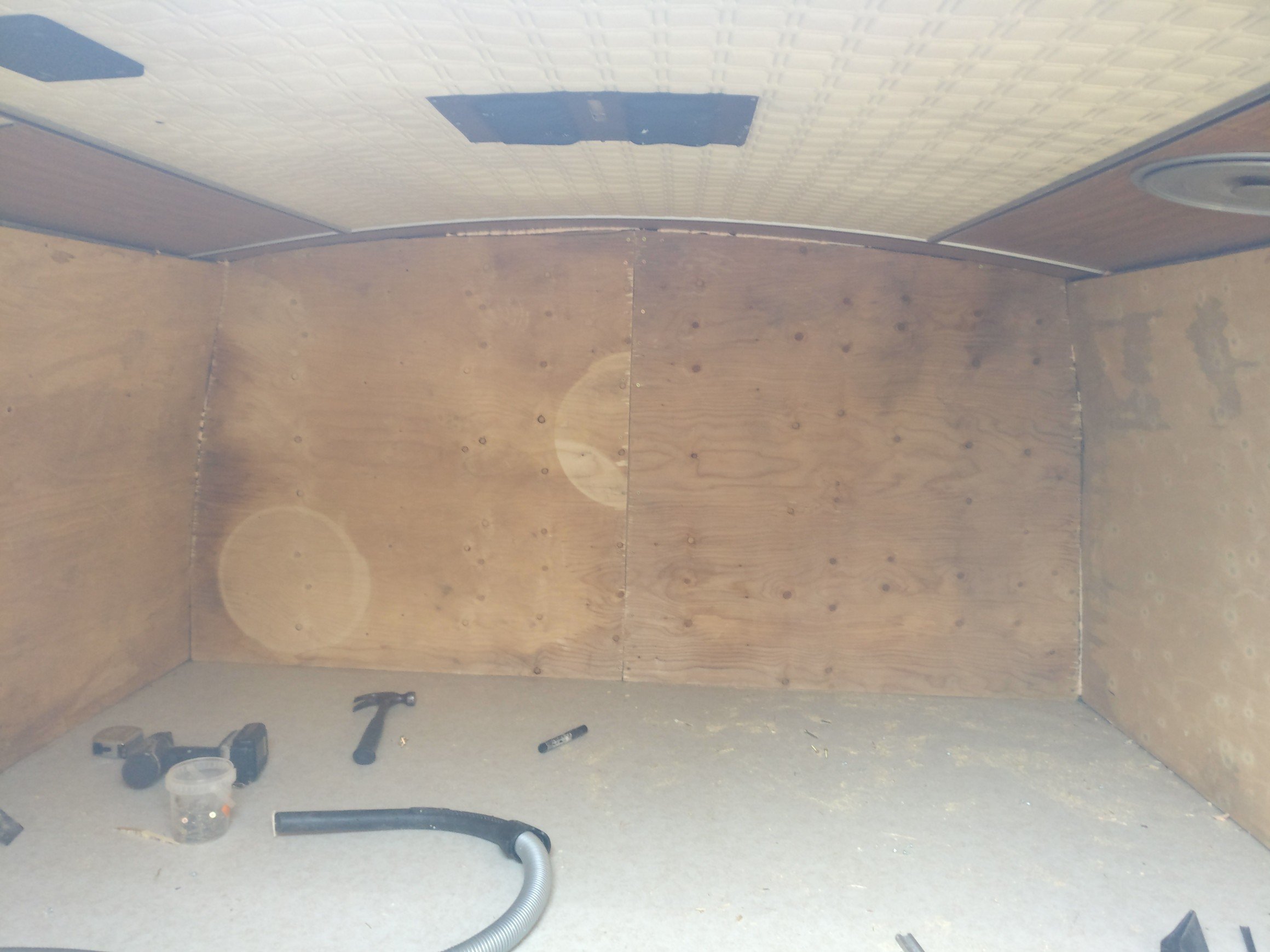 Frouva meinasi, jotta säästämme työtä ja siloitellaan vähän saumoja ja ruuvinreikiä ja vetäistään maali päälle vanereihin toistaiseksi.
