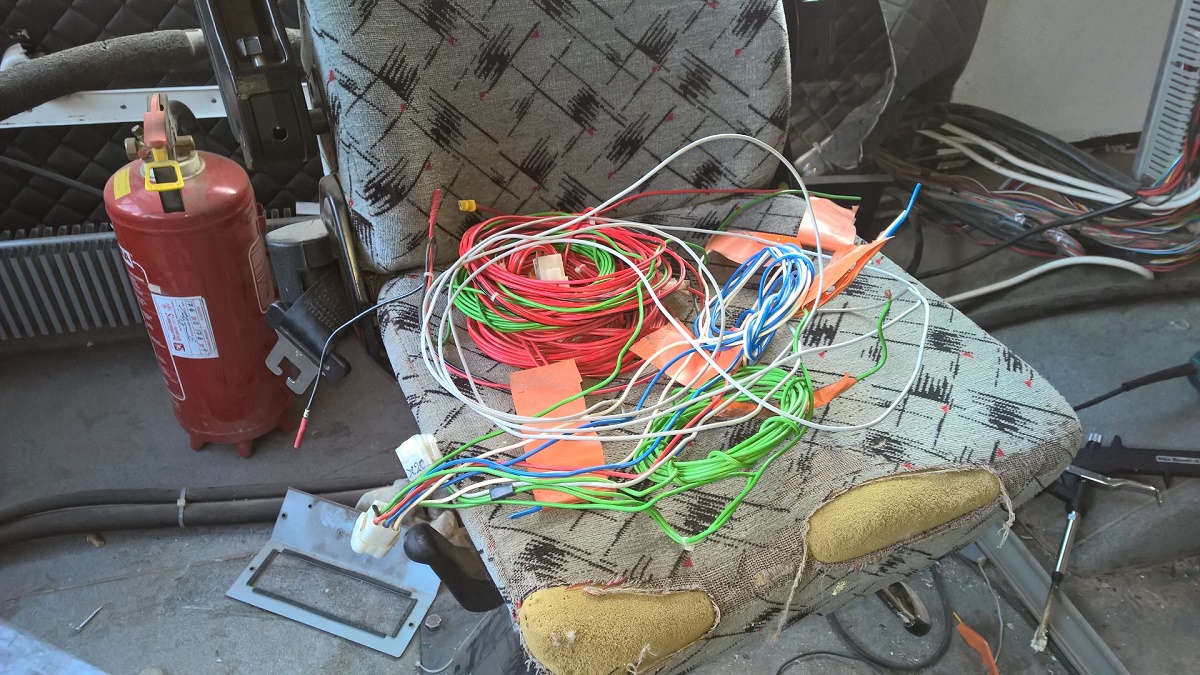 Tuosta sekamelskasta löytyvät... vanha wc...(wc:n valaistus yms. muuvirta) vanha valaistus ("kirjasto osuuden"...mitä ohjattiin kuskin paikalta) ja peräosan poistoilma puhaltimen piuhat...ovi nappeja ja ja ja en muista oliko siinä muuta... enkä ois muistanu noitakaan mut sen verran hoksottimet pelas sillon ku aloin tuota purkamaan et...kirjoottelin teippiin mihkä mikäki on menny... (joskus mää yllätän iha itteniki... )