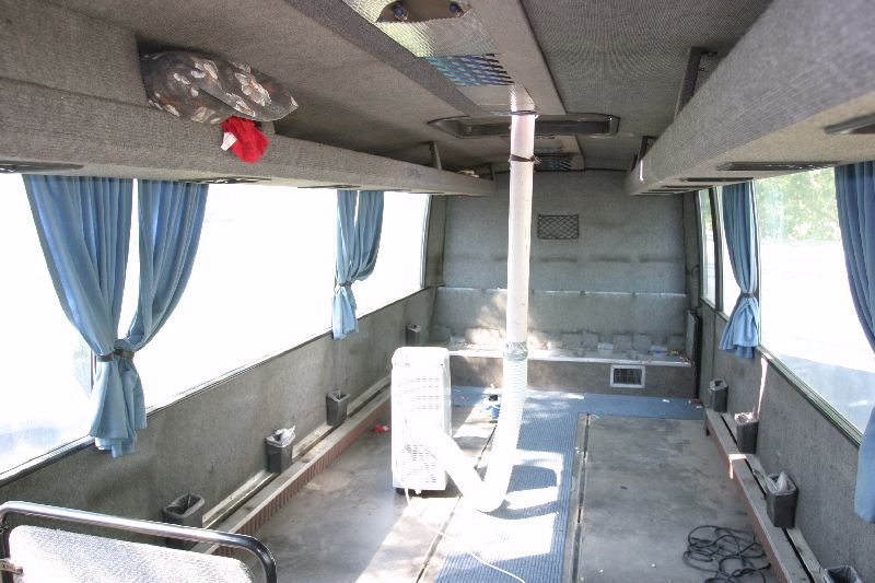Juu - "messumatto" pintaista mahonkivaneria ovat Berkhof-korin alkuperäiset sisäverhoilut. Alkuperäisiä pintoja jätän näkyviin keskiovelta eteenpäin. Etuosassa ikkunat ovat kokonaan näkyvissä ja patterin ja ikkunan alareunan jätän ennalleen. Eli mitään alkuperäisestä sisäverhoilusta en pura pois - avasin muutamasta kohdasta ja katsoin, ettei ole kosteusvaurioita.