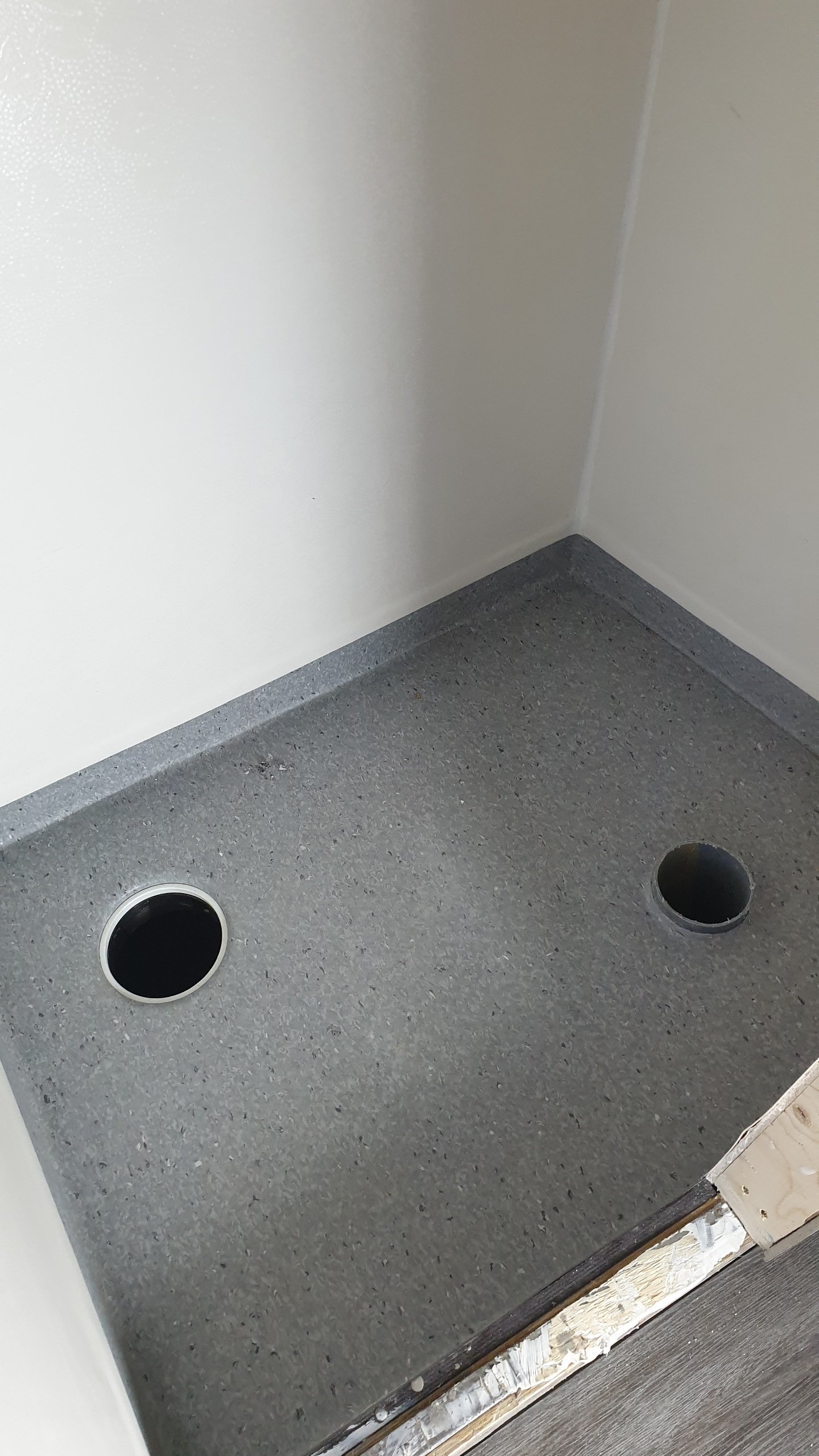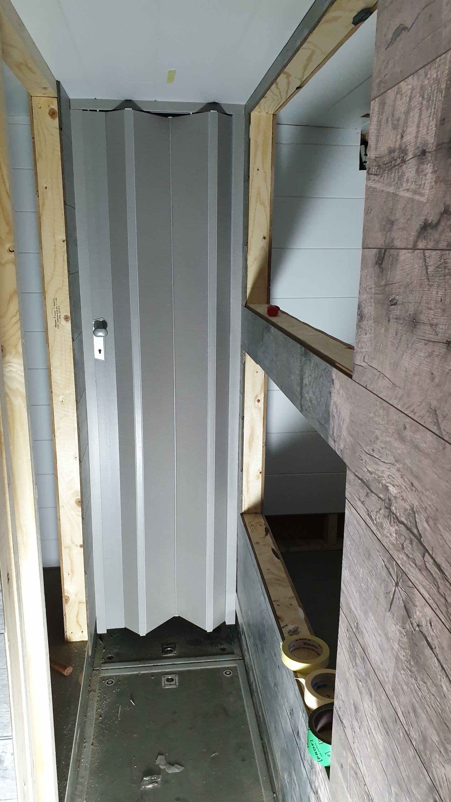 Kohta pääsee sisälle tarpeille. Ei tarvii kuusenjuurelle enää aamulla kömpiä. Nyt on koppi ovea ja tasoa vaille vesitiivis, niin saa mukavasti aamusuihkut ja istumishommat hoidettua samalla.