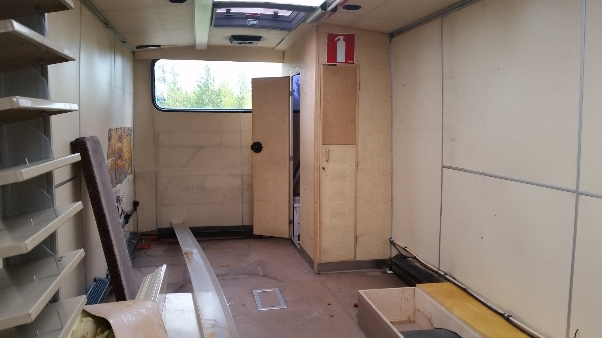 No asiaan autonkuljetus tilasta tulee 3,3m pitkä ja bussin leveydestä se ei vie ku 152 cm tarkasti ottaen.84 cm jää toiseen reunaa tilaa..ja älkää nyt mistään saunasta alkako puhumaan kohtahan se on tehtävä