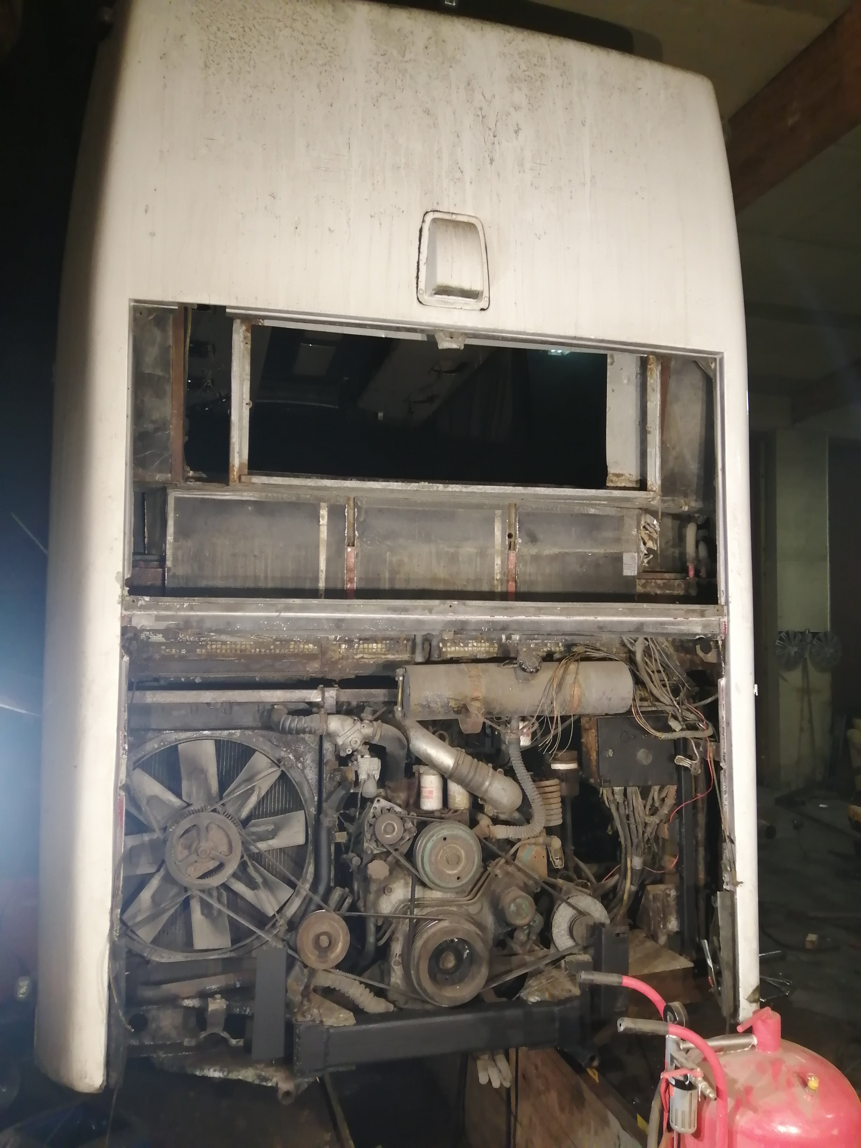 Ilmastointi oli jo poistettu käytöstä, mutta kenno jätetty takapäähän, samoin puhaltajat, joten ne poistettiin.