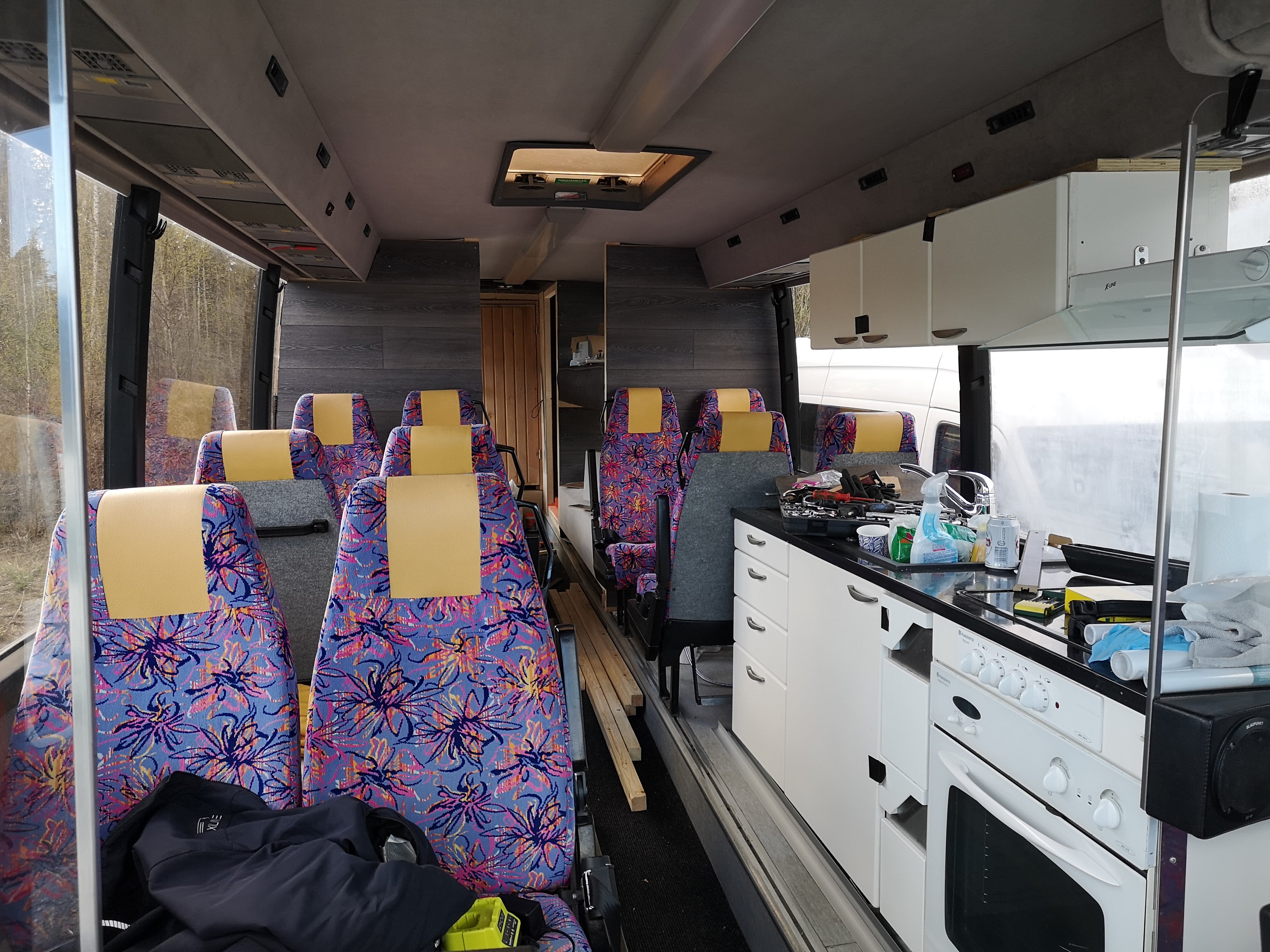 Kiukaaksi valikoitui Helo 3.5KW kiuas josta tarpeenmukaan nappaan yhden vastuksen irti ja sitten saunotaan 2.3kw kiukaalla