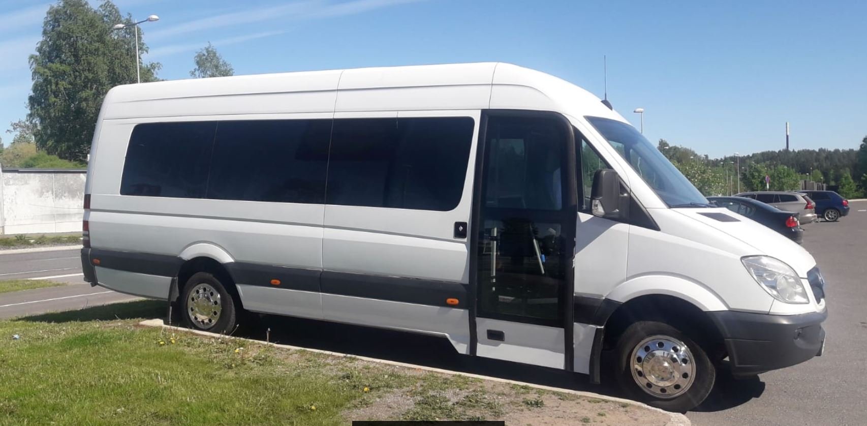 Tuollainen Can-väylä on ajautumassa pihaan. Nätti sisältä ja päältä. Ollut 9-vuotta samalla liikennöitsijällä. Lämmöllä pidetty ja vain metri-kaks ajettu vaihtokoneella. Todella mukava ajaa ja penkit voi järjestellä mielensä mukaan kiskoille. Otteessa on 16+1 ja maininta, että 9+1 voi myös käyttää. Tavaratilan seinä on pikalukoilla ja kokoa voi muuttaa.