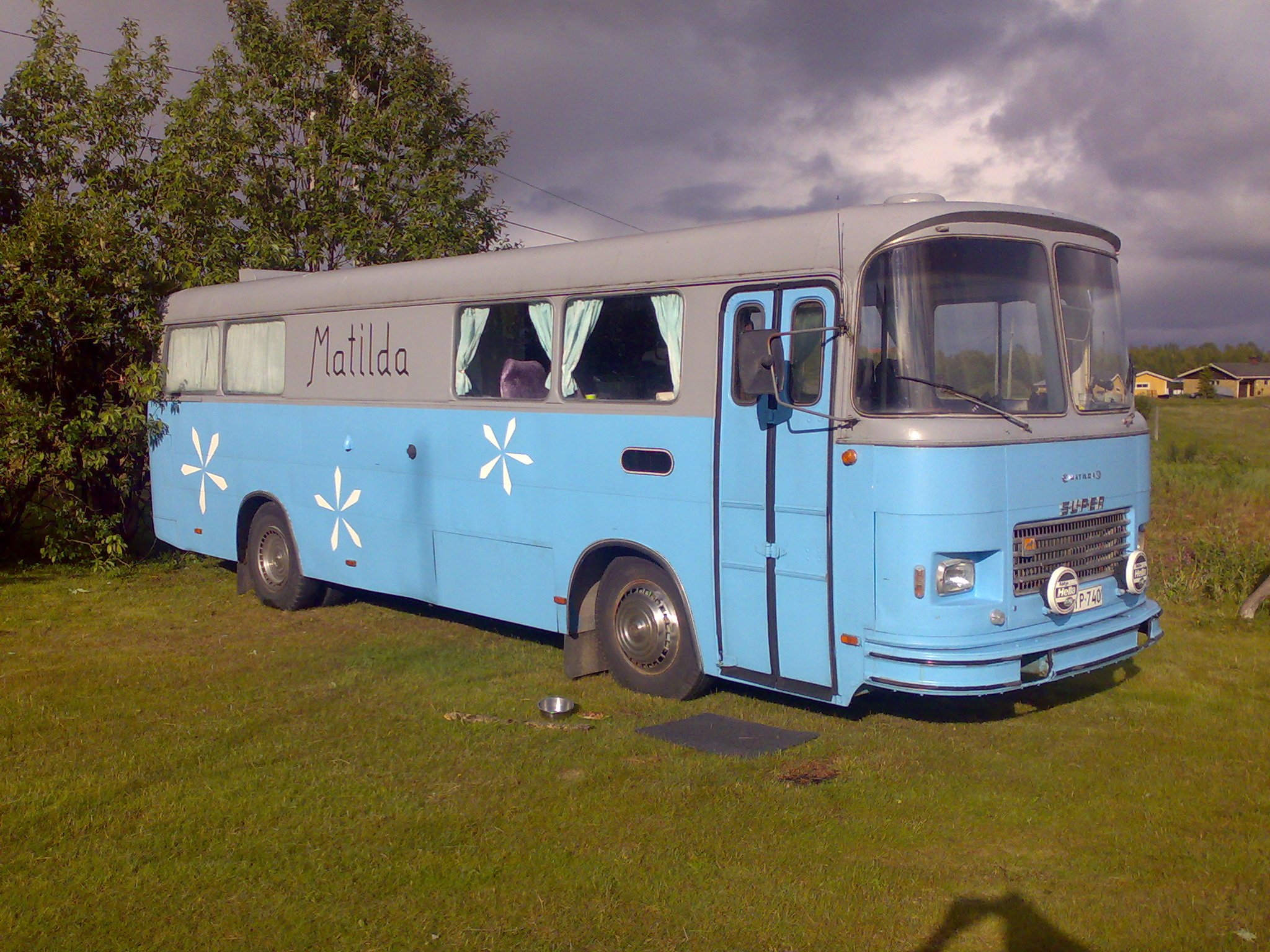 On hyvä kun nuo liikennöitsijät laittavat kulkurin nimen valmiiksi auton kylkeen, ei tarvitse ruveta erikseen kirjailemaan auton kylkeen nimeä.