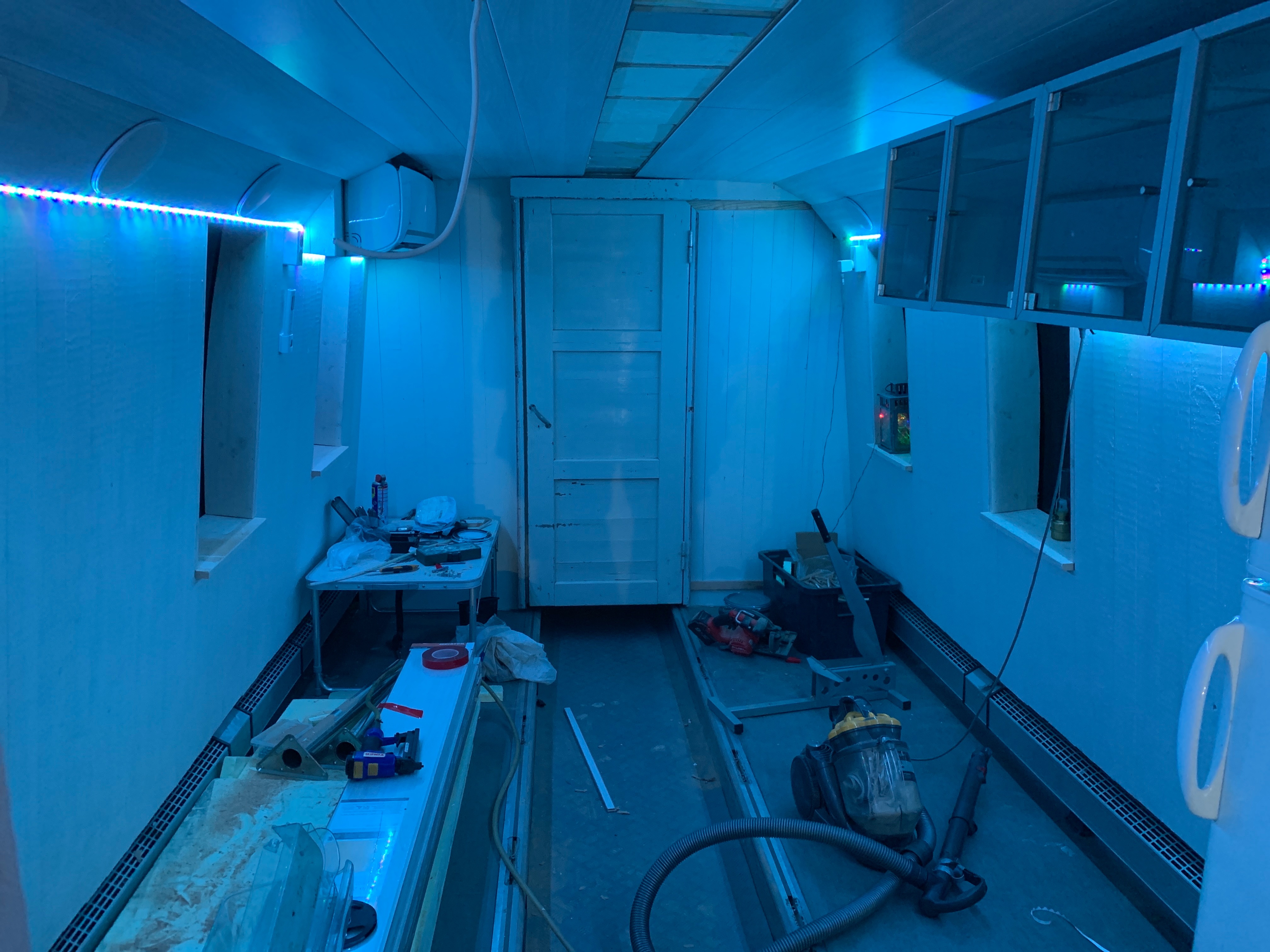 Tarkoitus tästä on tehdä talviasuttava asuntoauto jolla myös liikutaan, ohjaamo/matkustamo on siitä syystä erillään ja eristetty asuintilasta kokonaan väliseinällä että sais vähemmällä lämmittämiselle pysymään asuintilat lämpimänä talvella ja ehkäpä viileänä kesällä?🙄