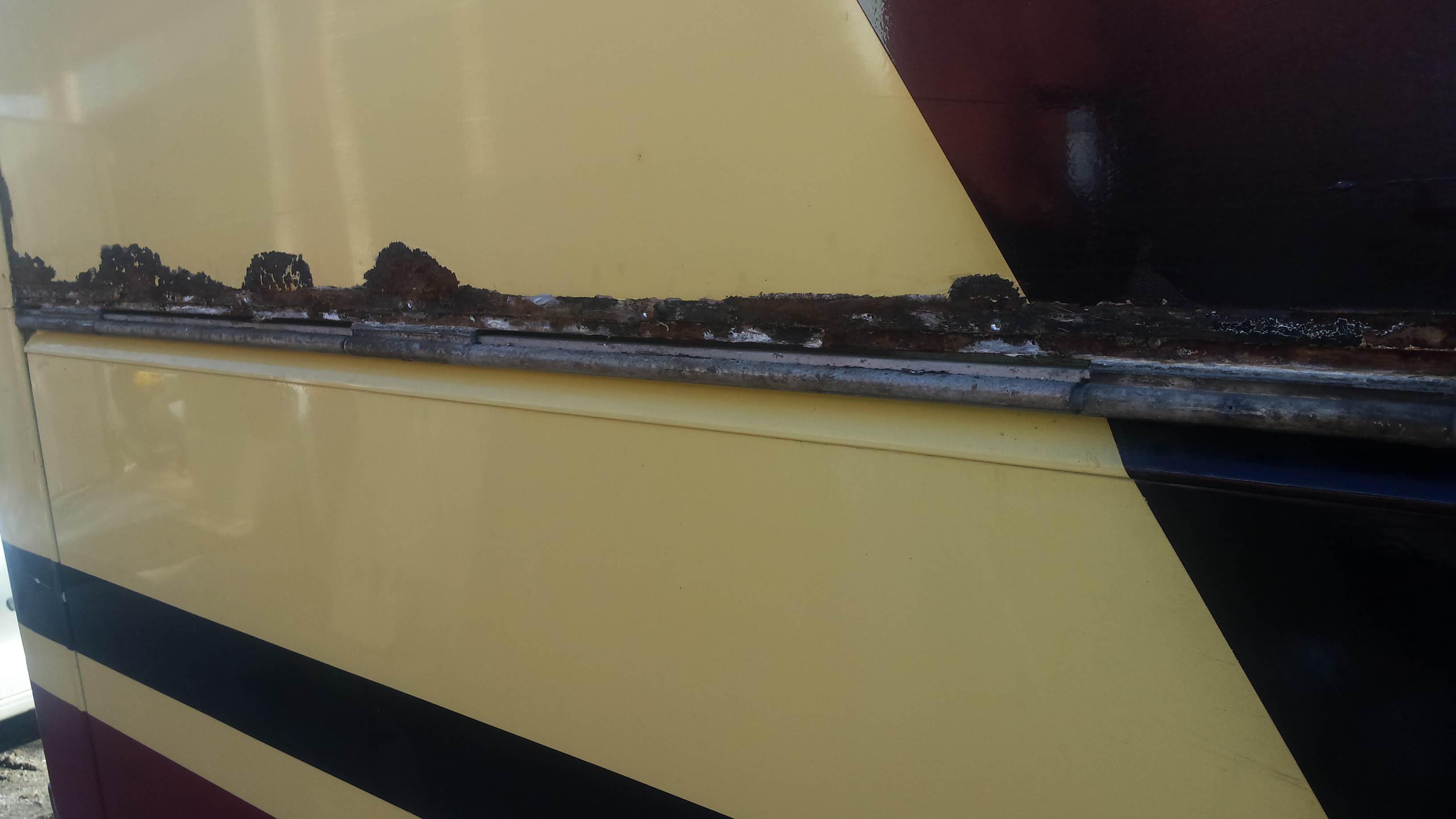 Pohjamaali jää hieman paremmin ruskeankarheaan kuin sileän jaloon. Molemmat irtoaa sitten Kerscherillä...