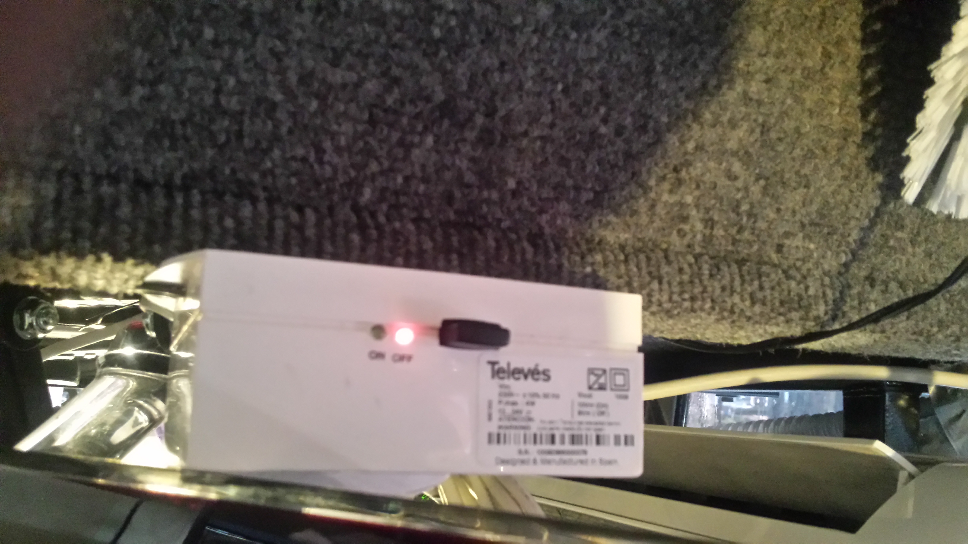 Hetki meni noita ylösalasin olevia kuvia tulkitessa, mutta virtalähde näkyy olevan. Kokeile laittaa se antenni ulos ja hiukan irti auton katosta. Se että sisällä ei antenni toimi, ei oo mikään ihme.