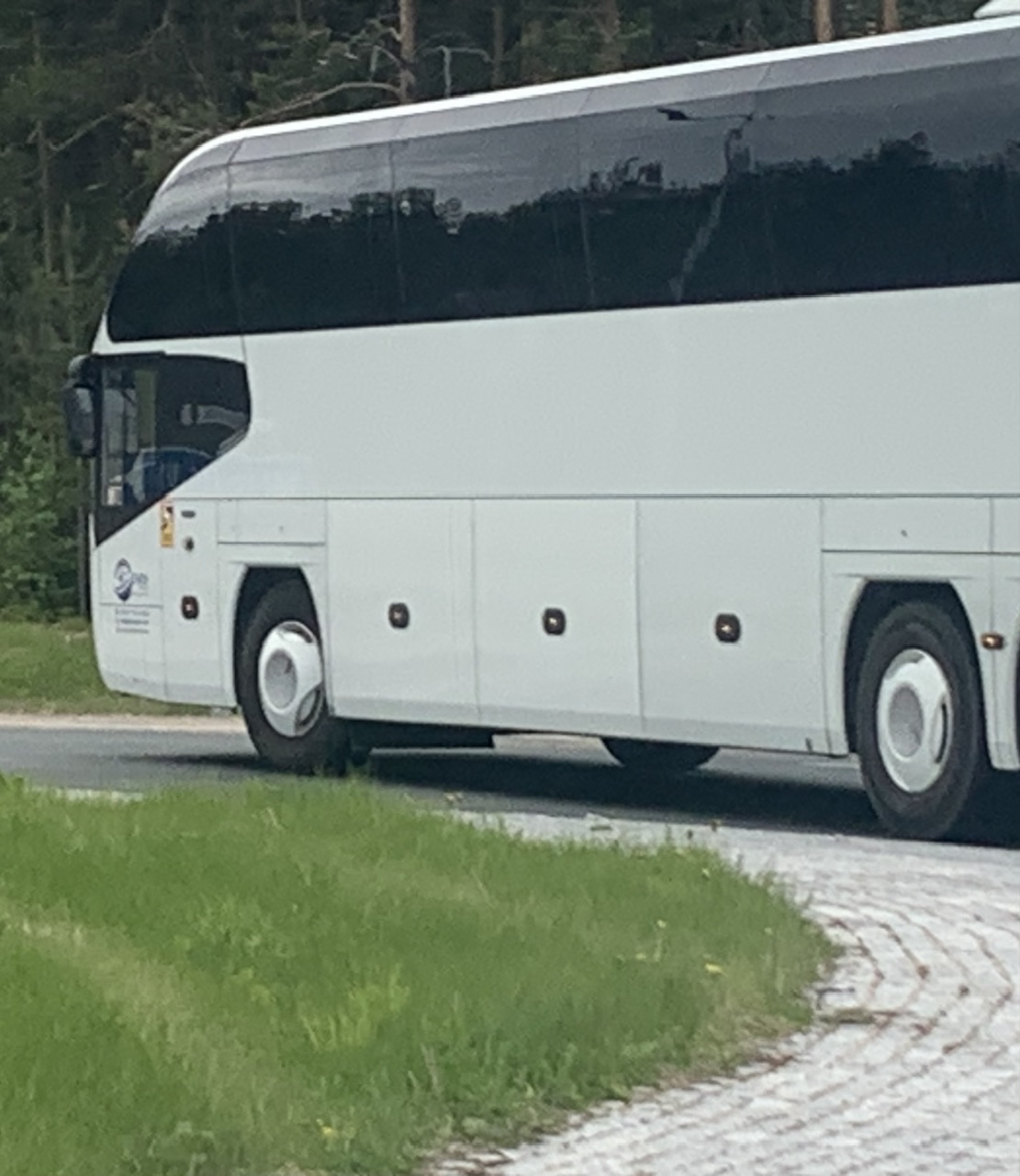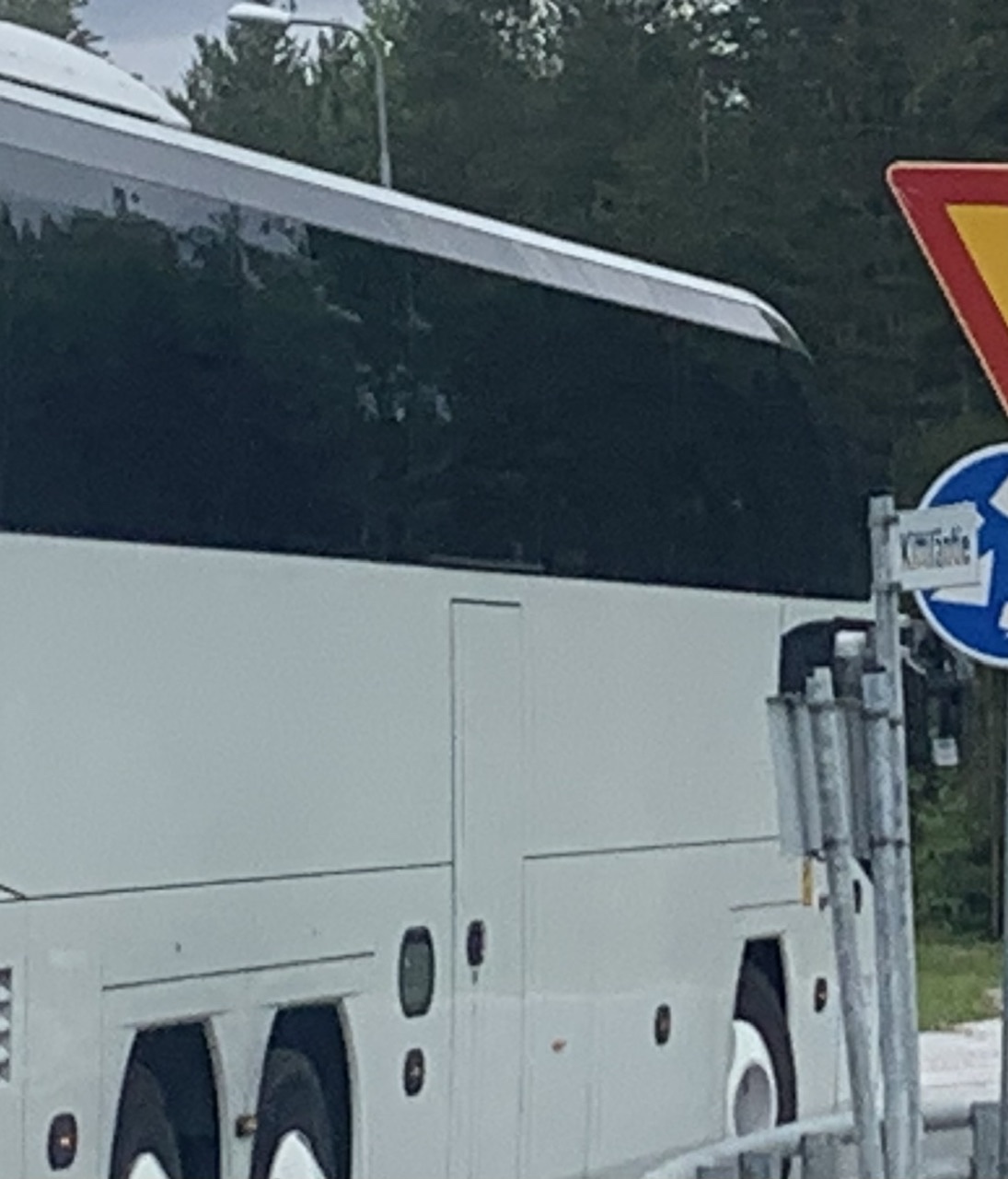 Neoplan Cityliner, melko uus. Vähän huonoja kuvia ku piti ajaa Rintteriä samalla. Oli kyllä melekonen peli. Varmaan aika halpa se joka suuntaan kaareva ylätuulilasi