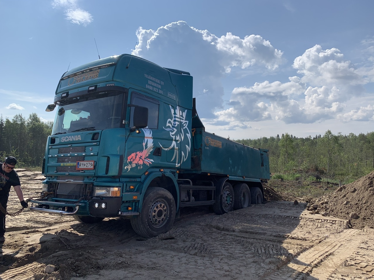 Nää oli menossa pohjoseen kaivokselle. Viis rengasta paino reilu 20000Kg