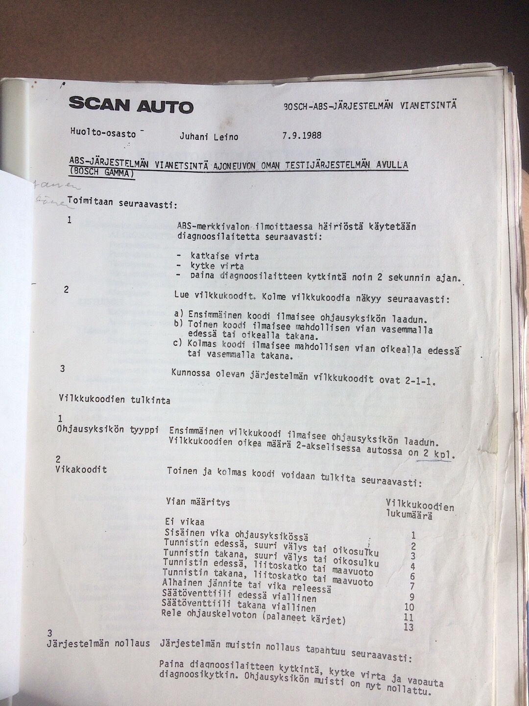 No toistaiseksi on rauhoittunut. Viimeinen koodi oli 7-2-1-11. Ensimmäisellä kerralla tuon koodin vilkuttelun jälkeen valo sammui itsekseen. Vain syttyäkseen uudelleen seuraavana päivänä. Päättelin että ei voi olla iso vika jos ajaessa korjaantuu. Tänään kömmin auton alle ja koputtelin tonnin pas... bassoa semmoisesta vetävien pyörien välissä olevasta, letkujen viitoittamasta pänikästä. Tänään on jo pariin otteeseen ABS-valo sammunut koeajolle lähdettäessä ja vilkkukoodi on ollut 7-2-1-1. Peukkuja! Huomenna pitää viedä kärri konttorille uusintakierrokselle. Kuukausi edellisestä käynnistä tulee täyteen.