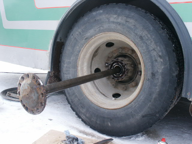 Takapyörän laakeri pitäisi kiristää, mitenkähän tapahtuu, onnistuuko kotioloissa? Eli auto Volvo B10M, -85