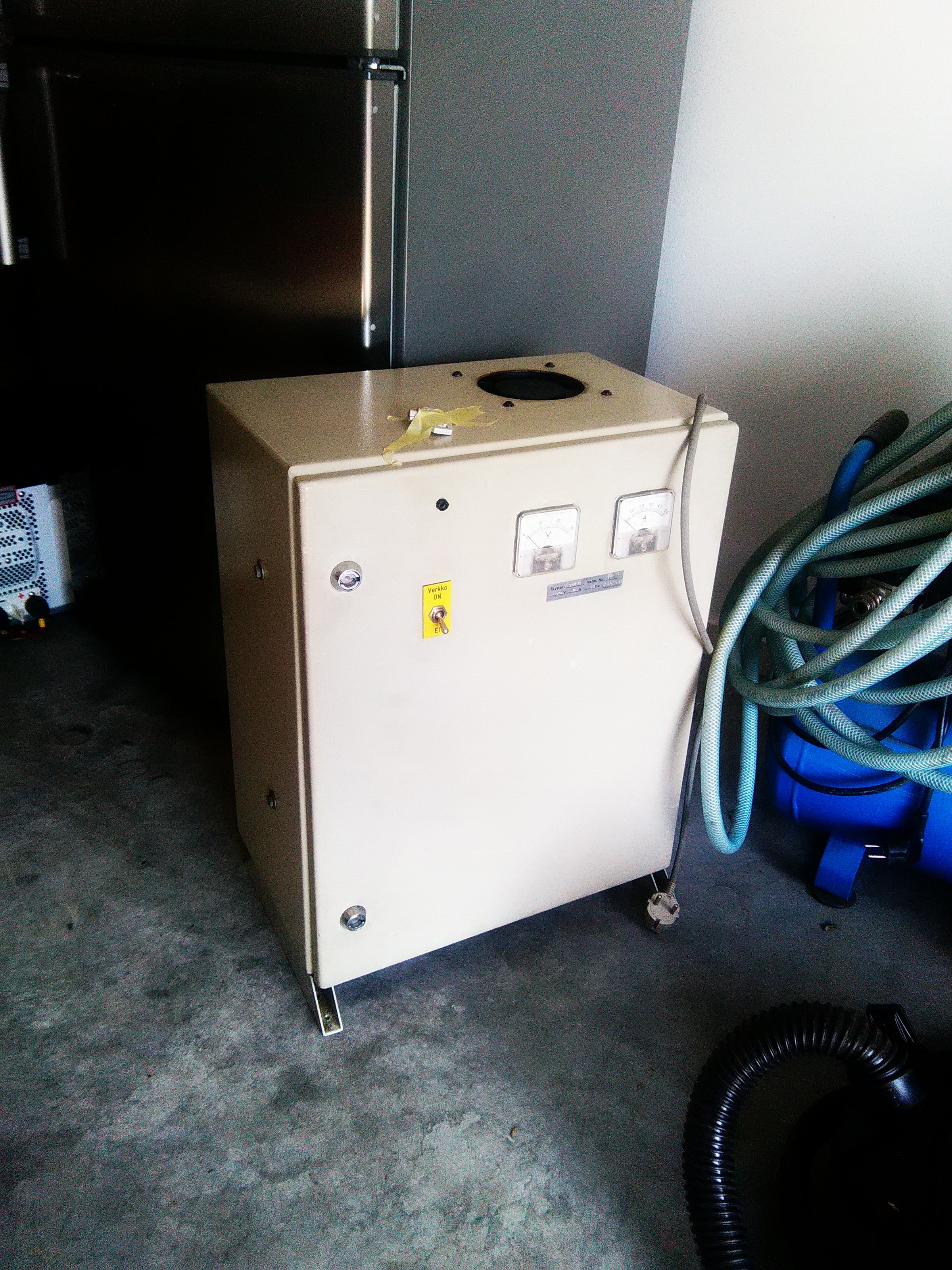 Kirjastosisun toimiva latauslaite, voidaan kytkeä myös erottamaan akut (iso kontaktori)