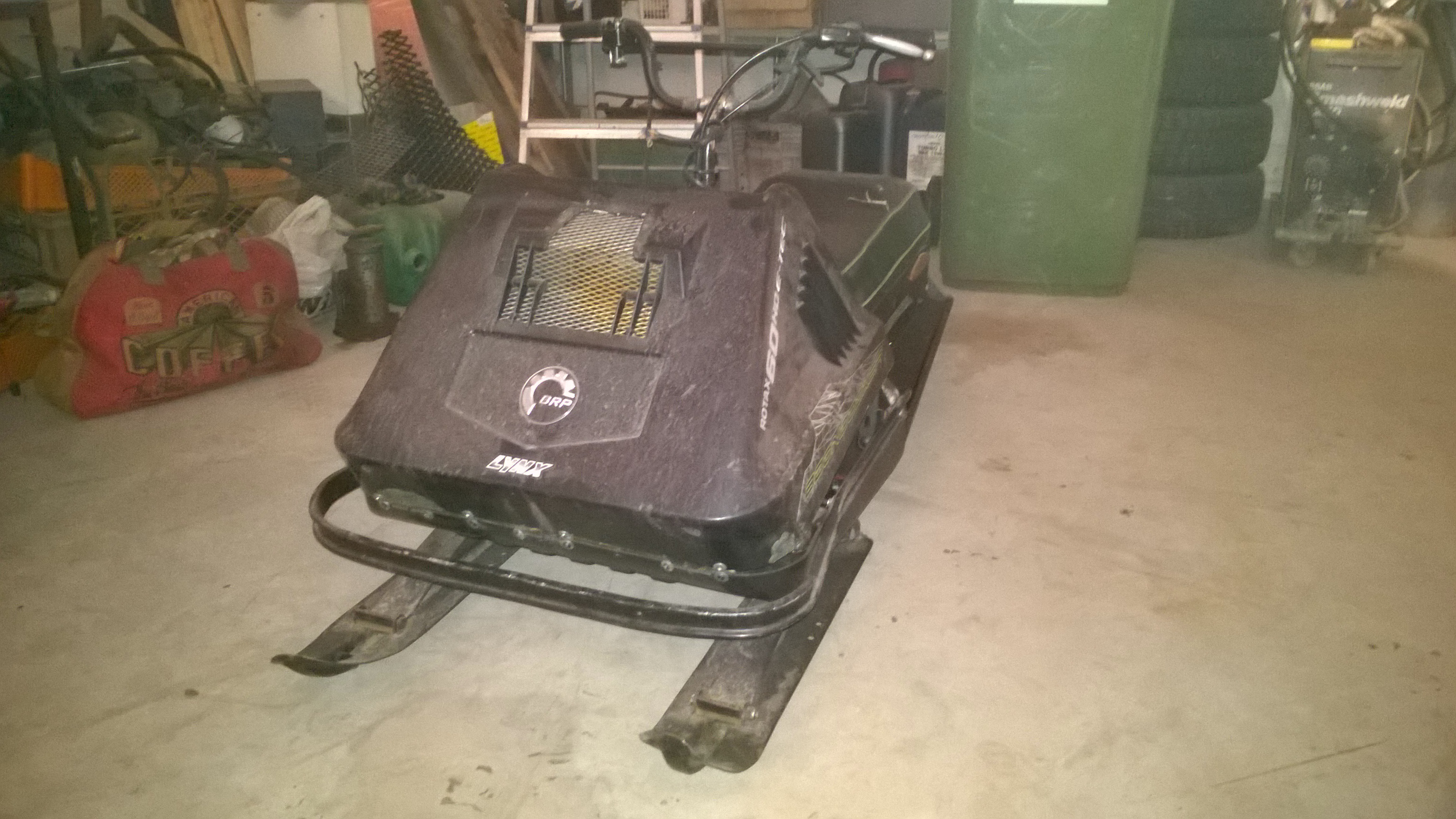 Nyt paikalla 4t moottori. Ajettu muutamia kertoja. Ei oikein toiminut hyvin. Ilmeisesti kaasutin ei toimi tai on vääränlainen. Aloin vaihtamaan alkuperäistä kaasutinta mutta kesken jäi...