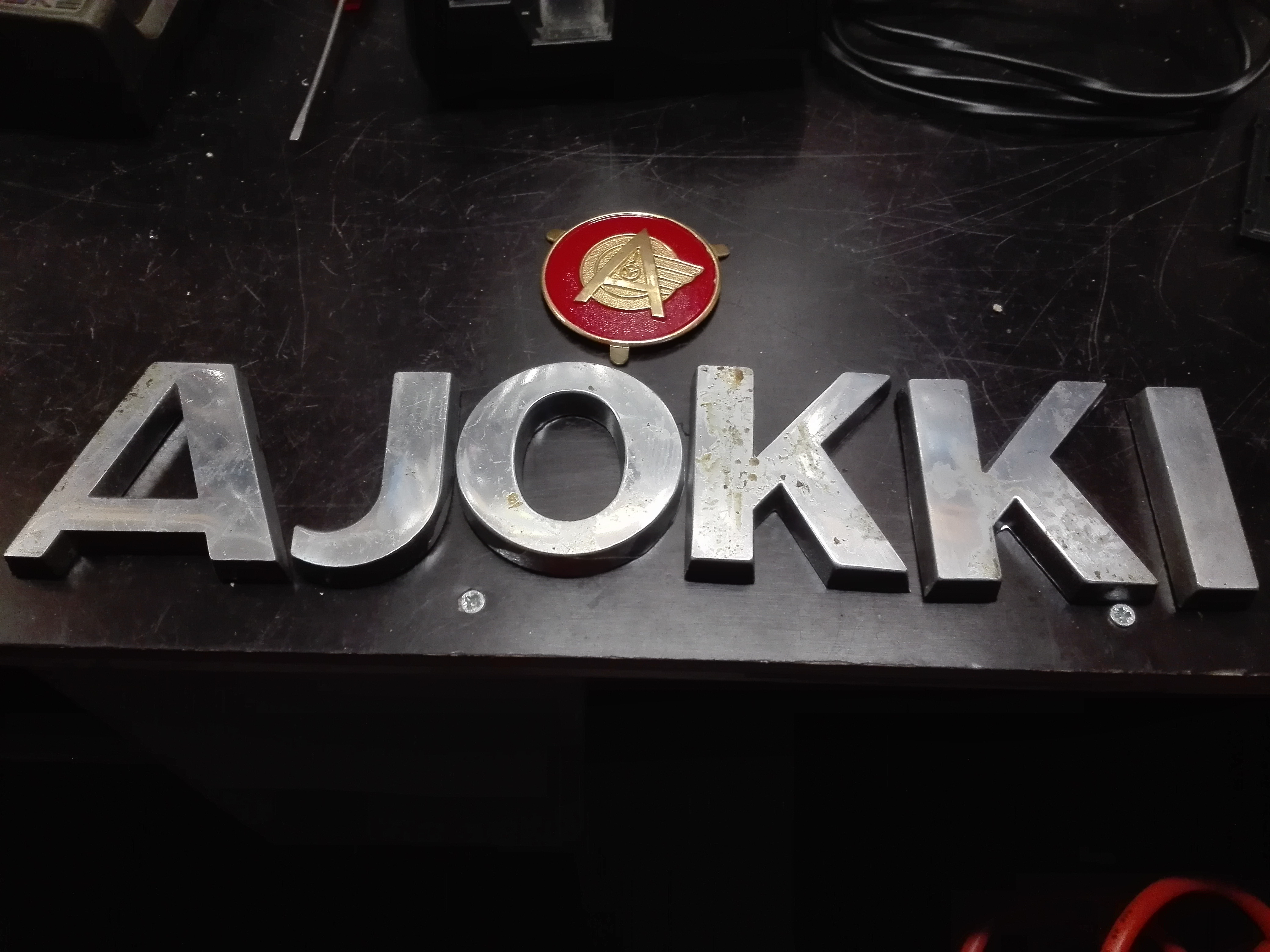 Vanhan ajokkilaisen keulakirjaimet. Jotain valumetallia ovat. Kirjaimen korkeus noin 62mm. Uudet käyttämättömät, mutta varastossa saanut jotain liimaa, tms. päällensä. Ei ainakaan fairyllä lähtenyt. Pyöreä merkki myös uusi ja uudenveroinen. Lieneekö ratin tai kapselin keskiöön tuleva? Halkaisija noin 56mm.