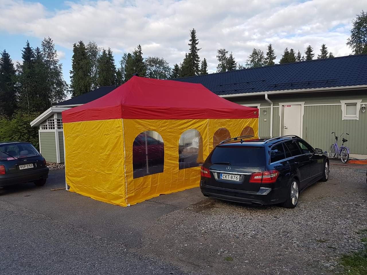 Kaksi kertaa kasattu pop-up teltta, eli käytännössä uusi.