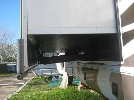 - 13m3 takatavaratila moottorin päällä - johon johtaa 3m:n taittuva ramppi vanhan takaoven kohdalta. Mukana PA, Valot ja backline
