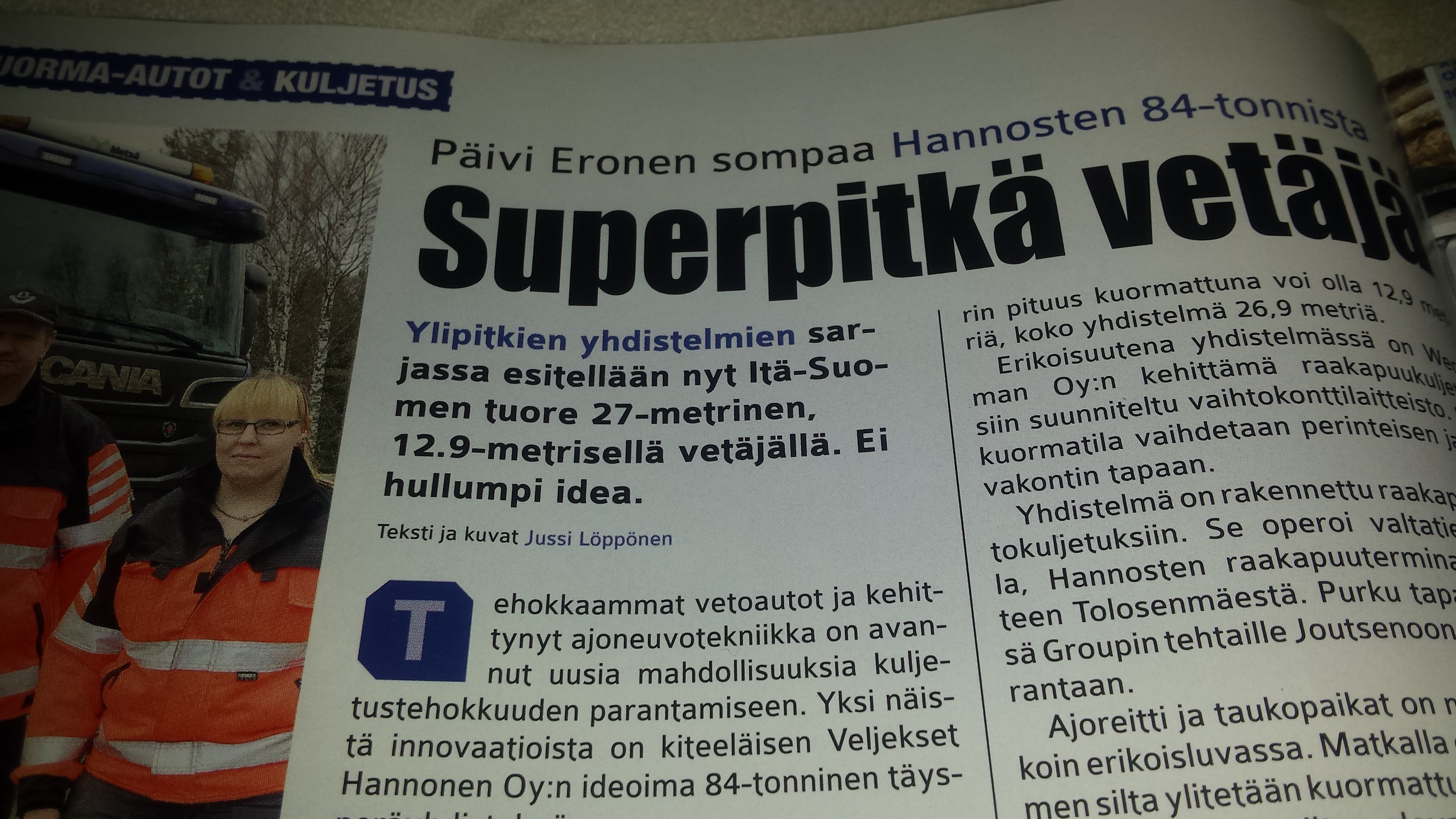 Metsäteollisuus on niin huonokatteista hommaa että pitää keksiä miten puuta saataisiin tehtaalle halvalla. Siksi sallitaan ylipitkiä ja ylipainoisia autoja. Ei noita saa kuin erikoistarkoituksissa rekisteröityä kaikenmaailman kokeisiin ja päästöihin vedoten.