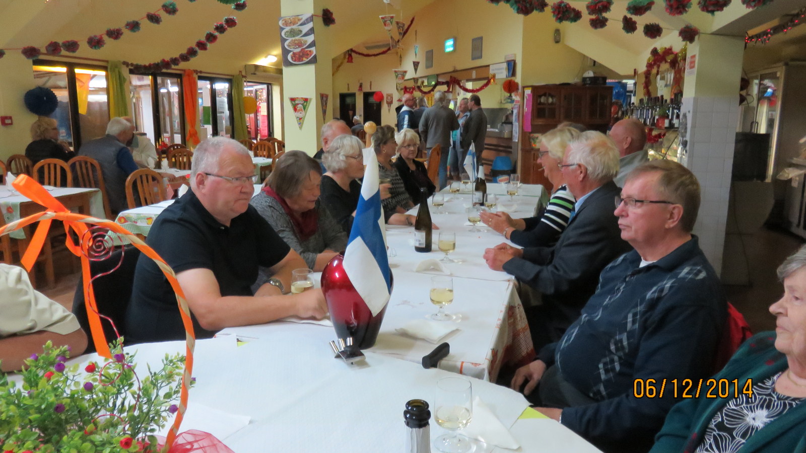 Illansuussa 20 Suomalaista karavaanaria istahti pitkään pöytään juhlistamaan Suomen Itsenäisyyspäivää. Emsimmäiseksi nostimme kuohuviini lasin Isänmaalle. Enempää "virallista ohjelmaa" ei meillä ollut kuin että "epävirallinen" seurustelu pääsi käyntiin ja kukin tilasi mitä halusi niin syötävän kuin juotavan suhteen.