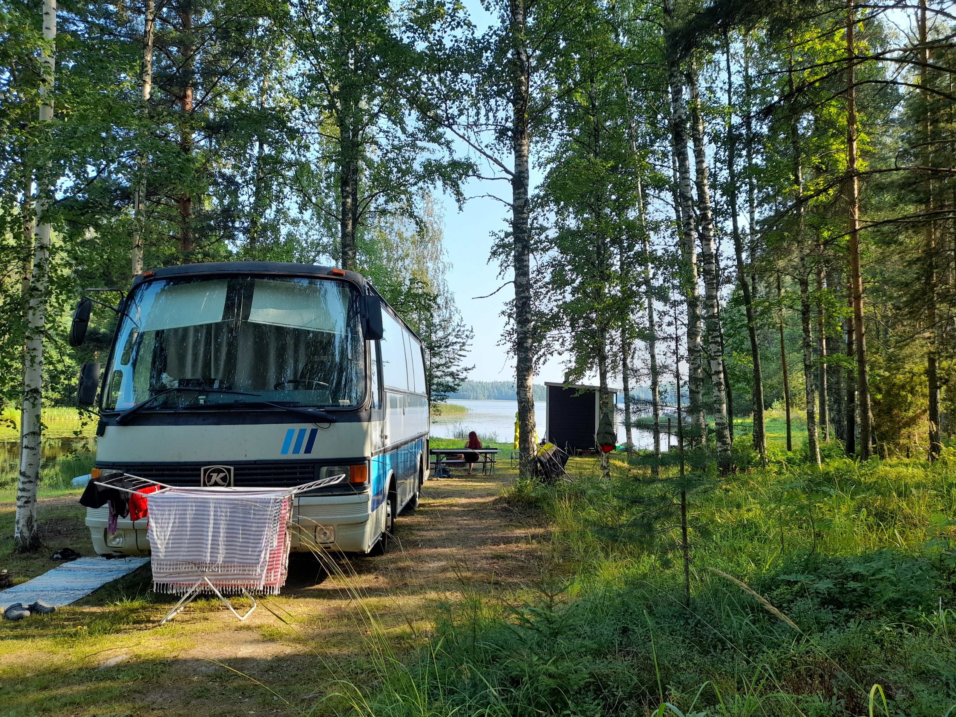 Pysähdyimme Saarijärven levähdyspaikalle uimaan. Tosi matala. Sai kahlata kauas että pääsi uimaan.