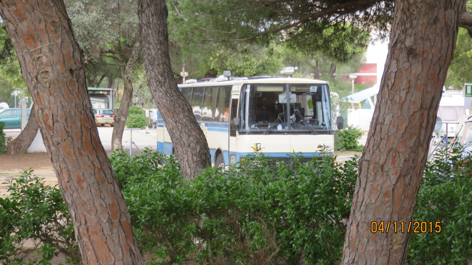 Linja-autoja on täällä leirintäalueella nyt viisi 2 kpl Ranska 1 kpl Ruotsi 1 kpl Norja ja 1 kpl Suomi