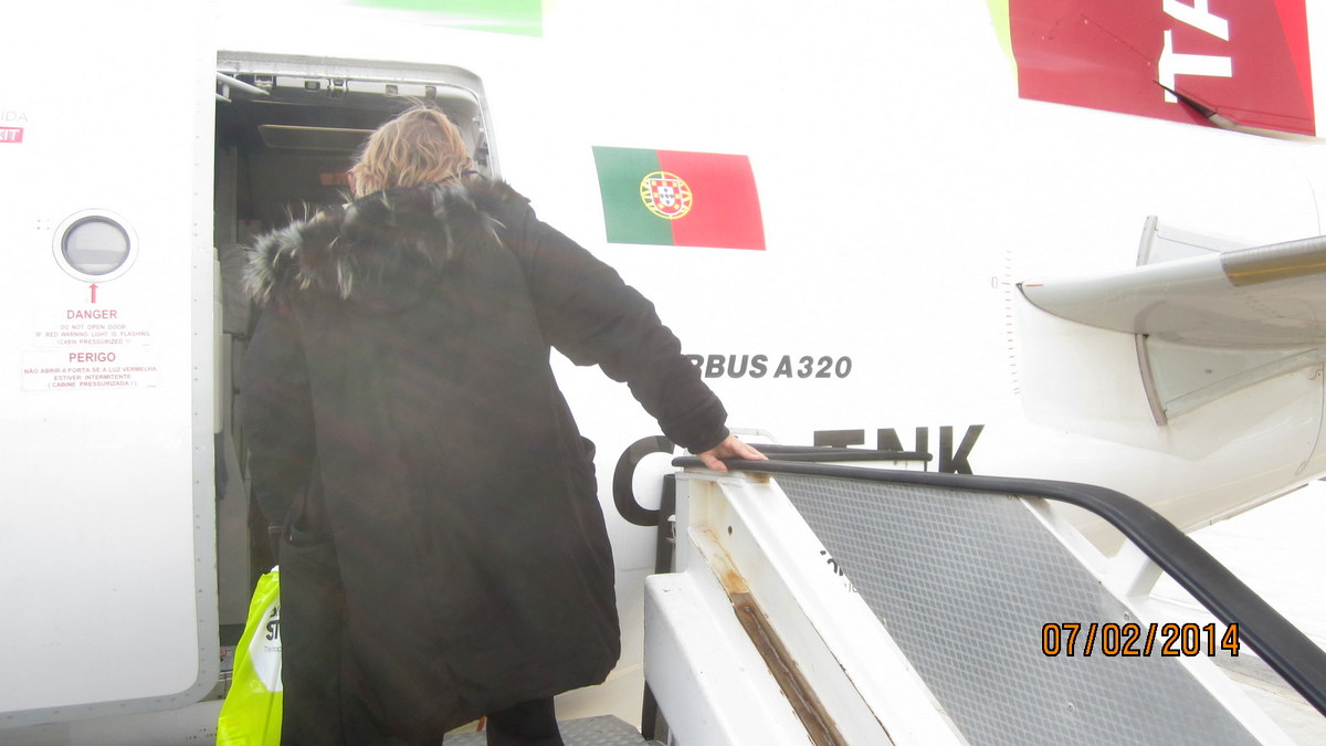 Tupu nousee pakallisbussiin Lissabonissa --> lento Faro:on