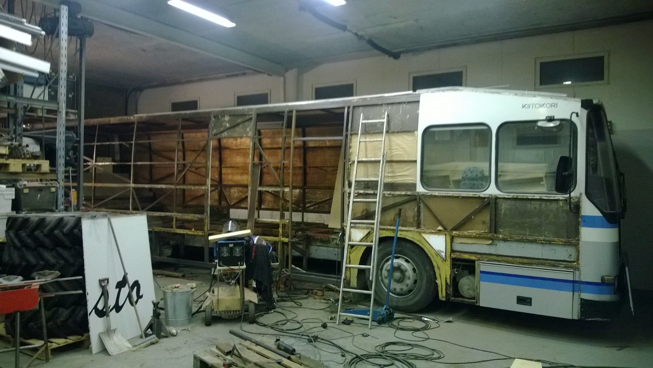 Tommosen rauta hässäkän mää siihen sitte väsäsin "rungoks" .Toinen puoli sai saman käsittelyn... Siitä syystä että mulla olis suunnitteilla tehdä sille puolelle "kerros sänky/sohva viritelmä"...:D ja alimman vuoteen/sohvan istuin osan alle olis tarkoitus tehdä auton "puhdasvesi säiliö" :) (en keksiny muuta paikkaa) :D onhan siinä paikassa se hyvä puoli että sitä ei tarvi erikseen eristää...:D