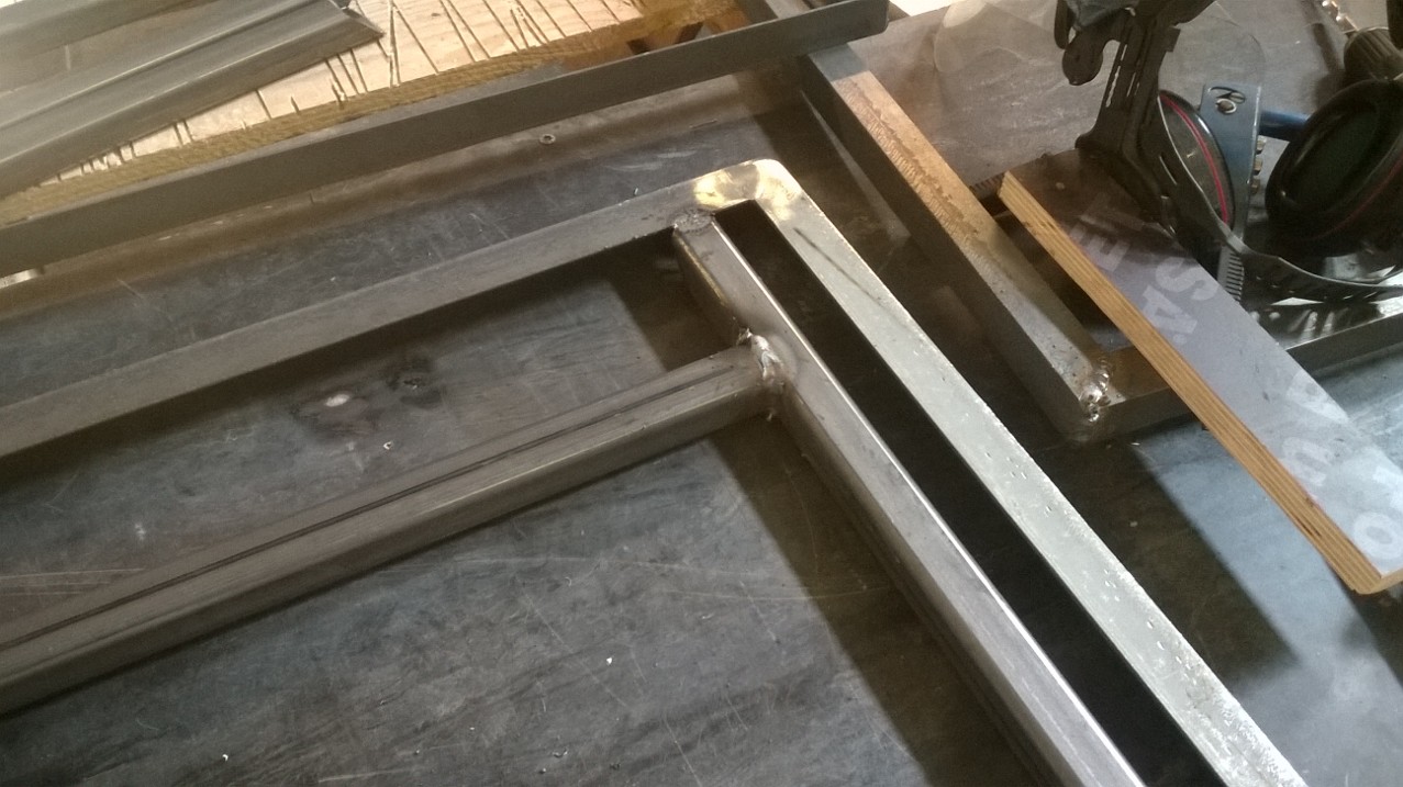 Apparin puolen luukkujen rungot... Syy miksi noi rungot on tehty noin "jerkusta" aineksesta on se että toi nolla kasi rst on sangen notkeeta/meltoo... joten joudun tolla rungolla tekemään sen "vääntö jäykäks"... oletus arvo on kuitenkin se et noille saattaa tulla jonkinmoisia vääntyily haluja jo ajaessakin, koska alkuperäisestä poiketen noihin tulee vain yksi "lukkokieli" ja yläpääkin on vain kahden saranan "varassa"... alkuperäinen kumisarana kuitenkin tukee kokomatkalta ja luukuissa on kaksi "lukkopistettä" (tämä on ihan pelkkää "mutua") Noista tuli ainakin hirvittävän kiertojäykät (ja raskaat)