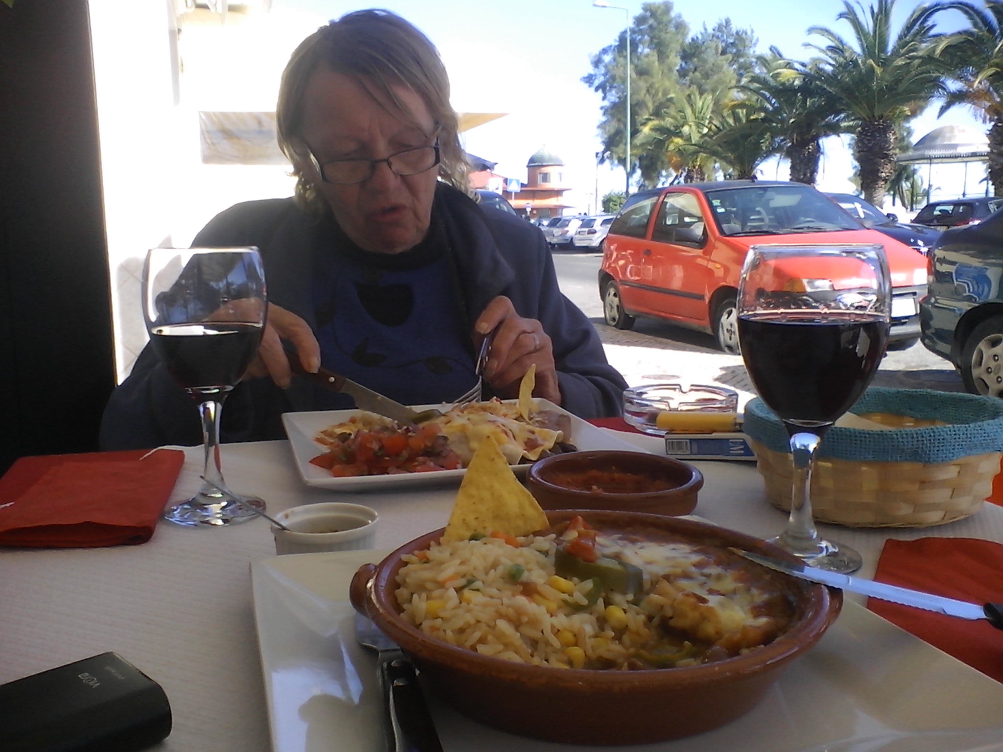 Eilen kävelimme kierroksen Lagosin vanhassa kaupungissa. Kiipesimme mm. Portaat ylös kolmanteen kerrokseen Mercado Muncipalin terassille maisemia katselemaan. Yllätyksenä että se olikin katutasossa vanhan kaupungin puolella. Käsilaukkua Tupulle etsittiin mutta ei nyt osunut silmiin. Taukoa pidettiin pääaukion kohdalla Oluen ja Portogescafen kanssa samalla kuunnellen katusoittajan trumpettisooloa, soitti ihan muukiin menevästi. Matkalla kohti bussia söimme tutussa ravintolassa josta Englantilaisen PUBin kautta autolle.