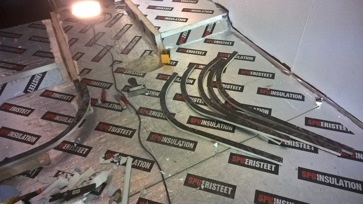 Unohda tuo päällekkäin kieputus. Eihän sitä levytä erkkikään kun niitä putkia ponnistelee siellä täällä, hevosen homma. Toisekseen entä putkitus huonekohtaisiin piireihin ja putket pituus suuntaan nähden poikittain jolloin pisin suora putkessa on kahden metrin luokkaa. Tämä ei elä enää juurikaan ja varsinkin kun putkelle jätetään vähän liikkumatilaa niin eipä tule ongelmia. Omassa projektissa tuli putket neljään piiriin, vessa ja makkari, keittiö, olohuone ja eteinen omiin piireihin. Menot seinien vierelle ja paluut sen rinnalle, huoneessa sitten riviputkilla lyhyttä lenkkiä täyteen. Lattialuukut tein niin että korvasin alemman levyn aukon 30mm uretaanilevyllä, putket siccukseen kiinni niin että putket tulee ja menee luukun nurkasta jolloin luukkua voi käännellä. Että putket pysyy levyssä niin laitoin siccuksen alle PP-kennolevyn johon sitten kiinnitin putket nippusiteillä. Nyt koko putkilevypaketti on ikäänkuin välikansi luukun ja eristekannen välissä.