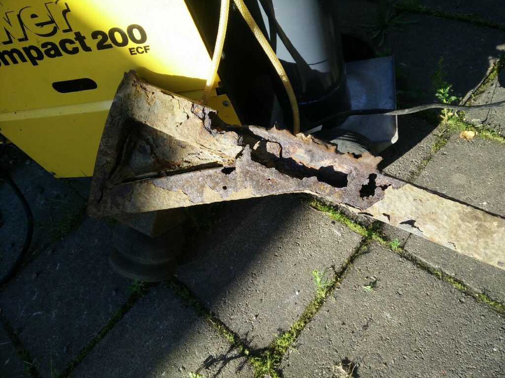 Mutta taas on suunta ehjempää kohti. Puukkosaha on kyllä hyvä noissa ruosteisissa osissa, ja muutenkin kun ei kipinöi. Ainoo, ettei meinna hitsisaumasta hyvin läpi. Teriä menee jonkin verran.