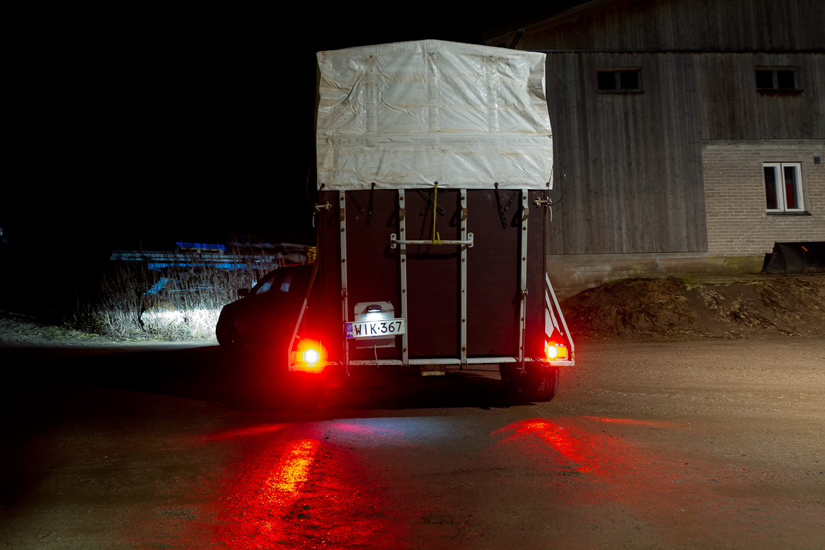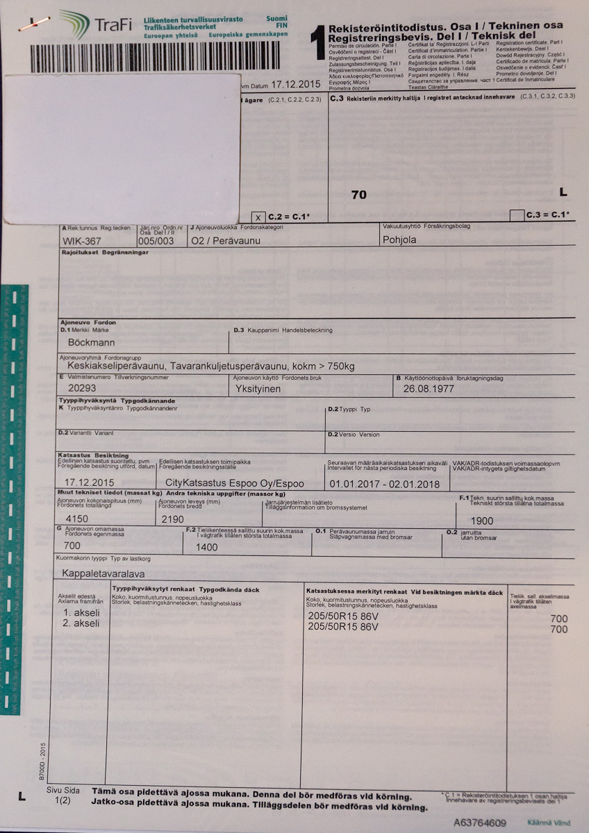 Niijjoo se on jarruton. .. ihmettelin kun kelpas kesäkumeilla leimalla. Jos nyt tulkitsin kumet oikein? Eiku jarrulline, mites noi painot nyt menee ku 750kg ylhäällä ja muualla 700 kg per akseli?