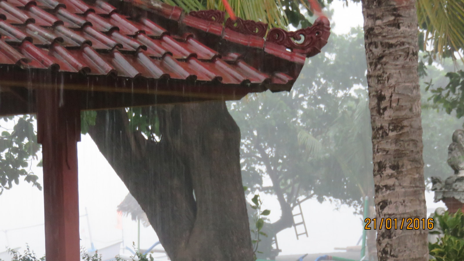 Tänään muutama teki aamu retken katsomaan delfiinejä ja parven sellaisia löysivät. Paikalla oli montakymmentä venettä jolloin parvi ohitti ne etäämmältä. Iltapäivällä saimme maistaa monsuunisadekuuron vilvoitusta. Ulkona kaikki oli märkää myös terassin alla.