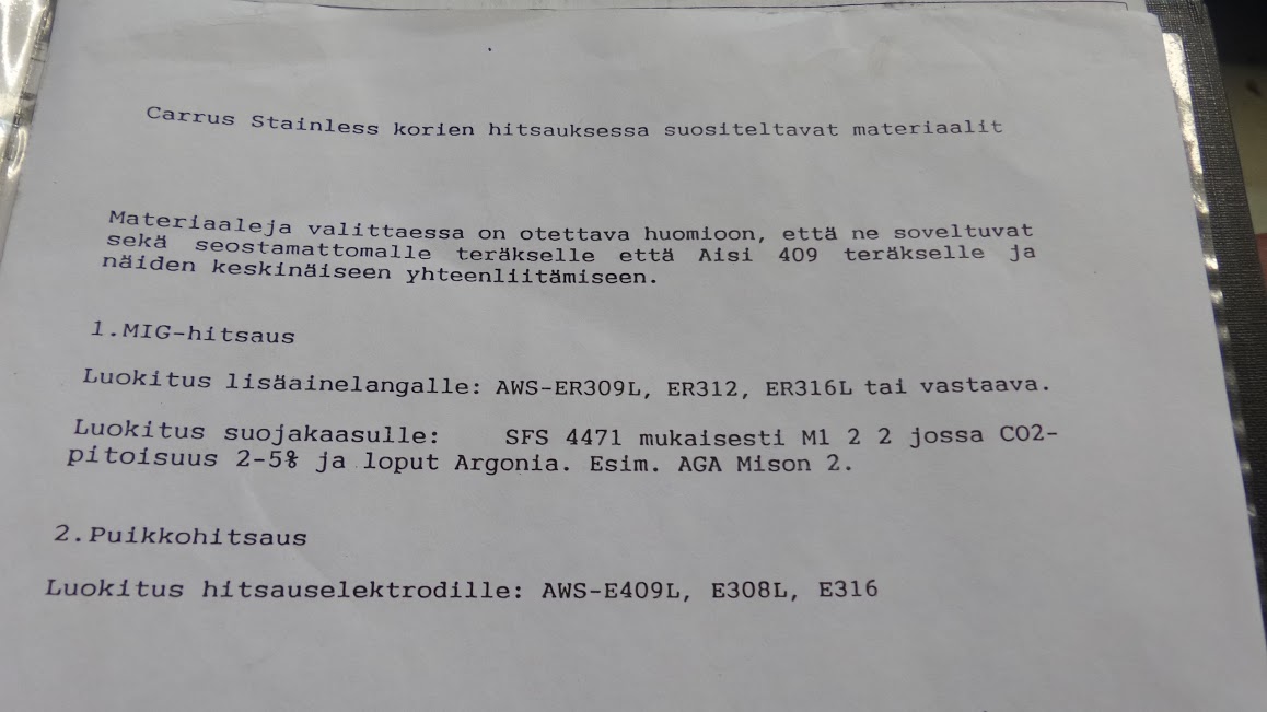 Mielipiteet jakantuu ohjeen mukaan hitsaus tai migillä normaali langalla, ehkä tärkeimmät joissa ohje