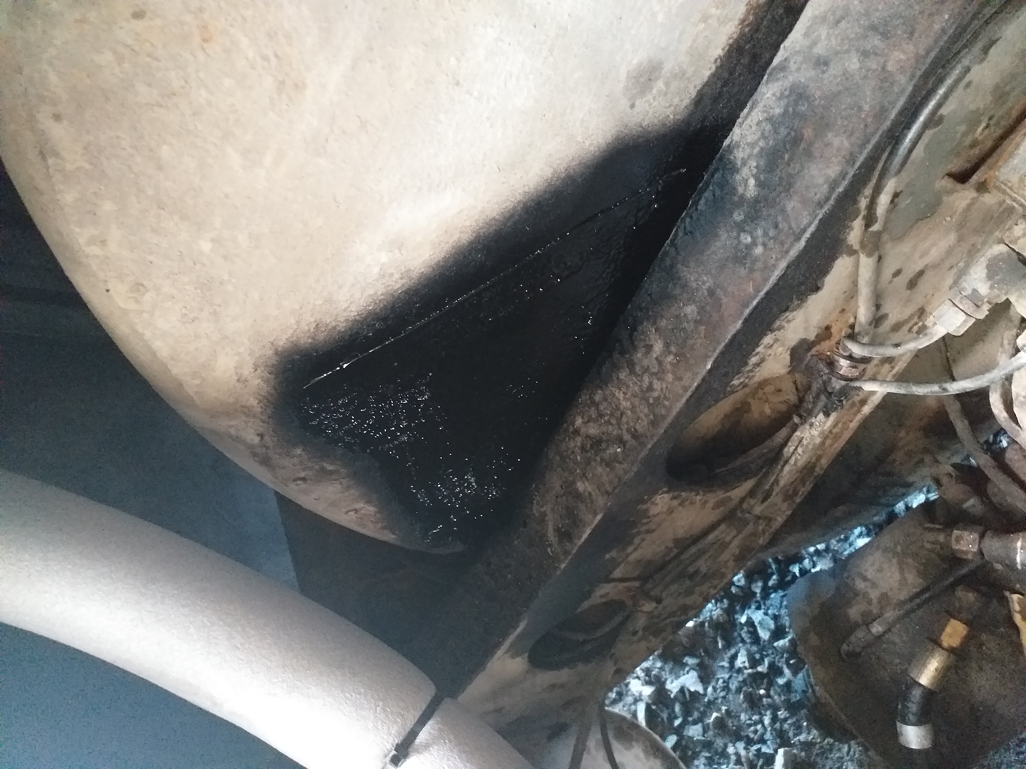 Takana oli rungossa pintaruostetta. Hioin rälläkällä veke ja sivelin motonetin rost stopin päälle. Kovaa metallia tuntui olevan. En pistä massaa enkä maalia päälle, koska ei kuitenkaan saa ilmatiiviiksi niin siinähän vain tehtäisiin ideaaliolosuhteet ruosteelle muhia, ja siitä ei sitten tietäisi mitään kun massan alla piilossa muhisi. Parempi olla "paljaana" ja käsitellä tarvittaissa.