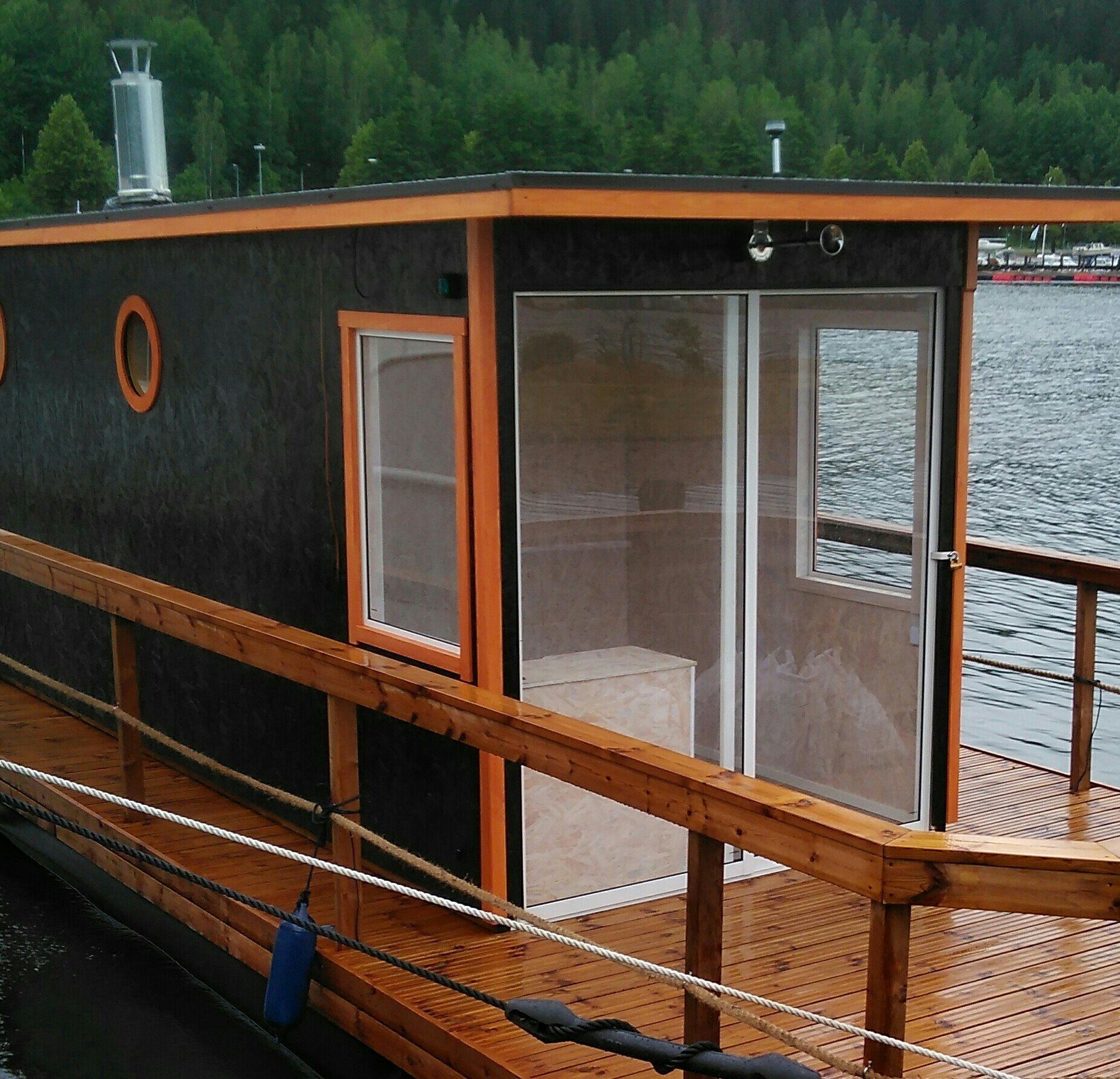 Joo, myö tehtiin kaverin kans saunalautan sisä ja ulkoseinät siittä, ja tuli hyvä, minusta.
