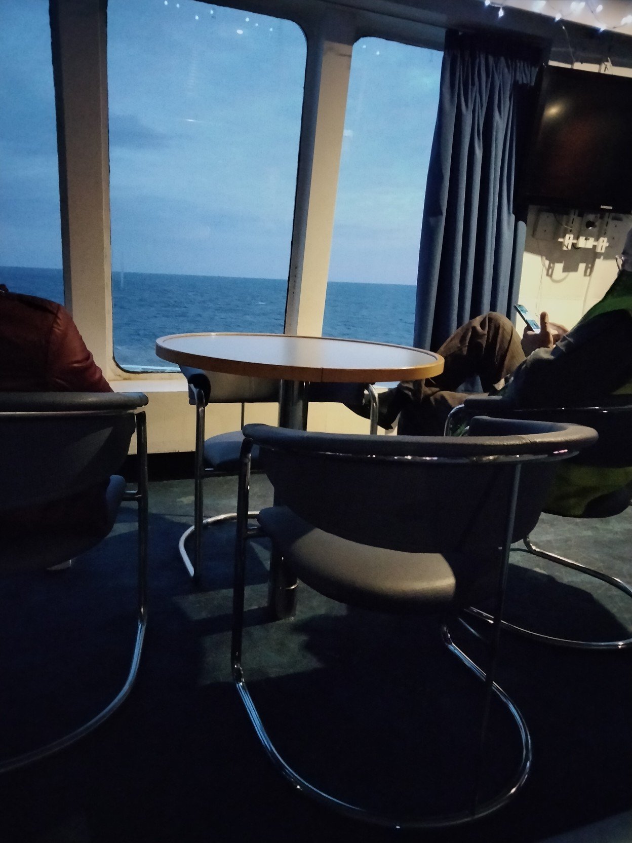 Verhot kiinni, ettei ettei koirat ihmettele turhanpäiväisiä ja ovet lukkoon. Sitten ylös (on muuten ahdasta kulkea rahtilaivan autokannella kun pakkaavat täyteen) vessan kautta aamupalalle ja siitä torkkumaan sohvalle ja miettimään, että mitähän pirua sitä taas tuli tehdyksi :lol: