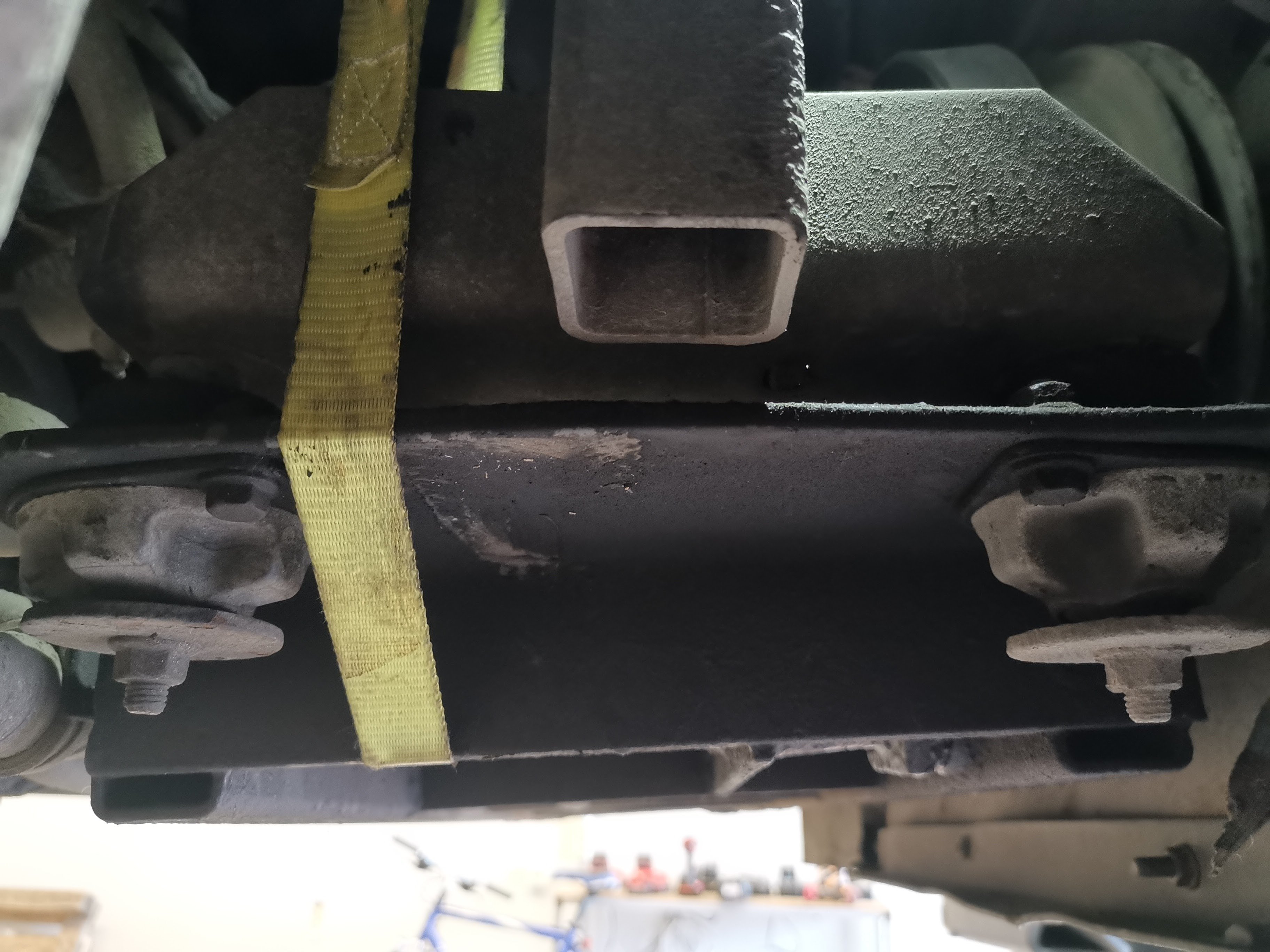 Samalla huomasin, että hydraulipumppu on vähän oudossa asennossa ja remmi ei kulje suorassa. Toinen pumpun kannatan kumeista tullut tiensä päähän ja piti liinalla tukea ylös ettei kovin syö remmiä ennen kun saa uudet kumit.