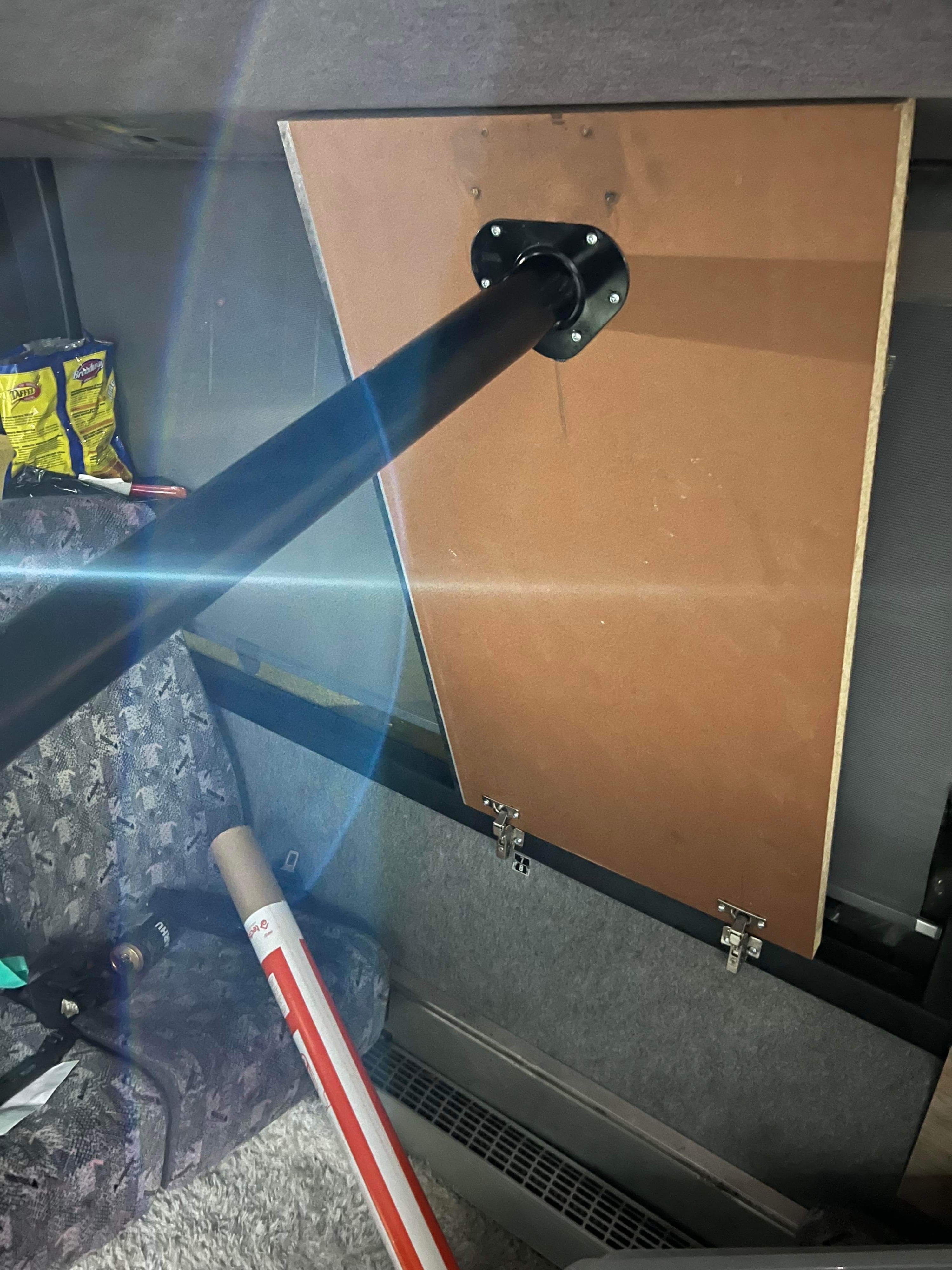 Keittiötä saatu vähän ja pöytiä. Niihin laitoin saranat helpottamaan siivousta. Vähän laattoja lattialle saatu ym.