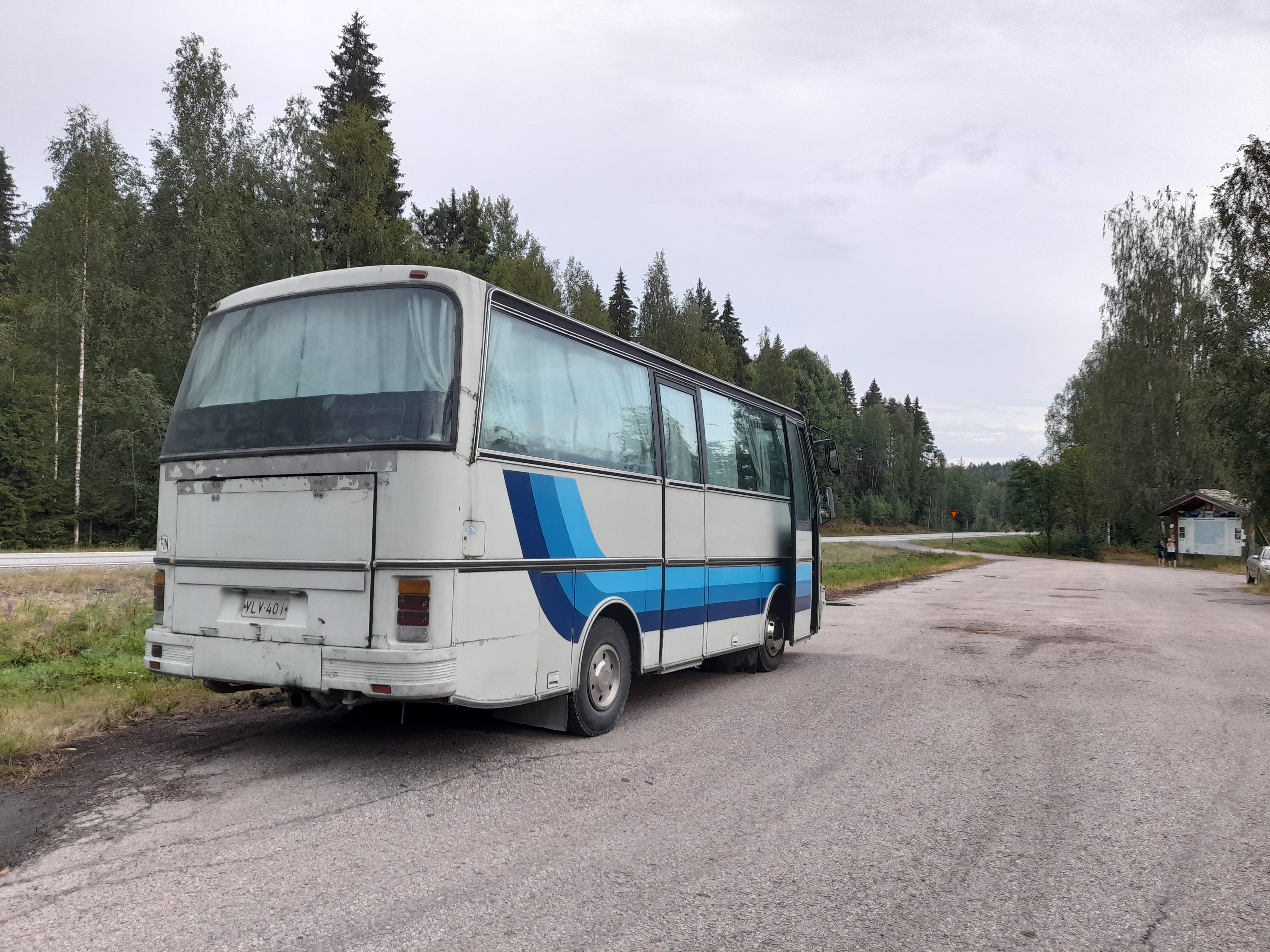 Kolilta päätimme lähteä kotia kohti. Jokapuolella oli vesisadetta ja pari viikkoa oltiin oltu reissussa , porukka tuumasi että lähdetään kotiin. Puolangan kohdalla tuli vielä idea lähteä katsomaan yhtä myynnissä olevaa Vanajaa. Sehän on matkan varrella. Ei muuten sitten ollutkaan. Auton piti olla Pudasjärvestä vähän etelään. Loppujen lopuksi löysimme auton jostain Taivalkosken ja Suomussalmen puolestavälistä keskeltä ei mitään. Eipä ole tullut ajeltua noin pieniä ja huonoja teitä bussilla. Aikamoinen mutka tuli matkaan.