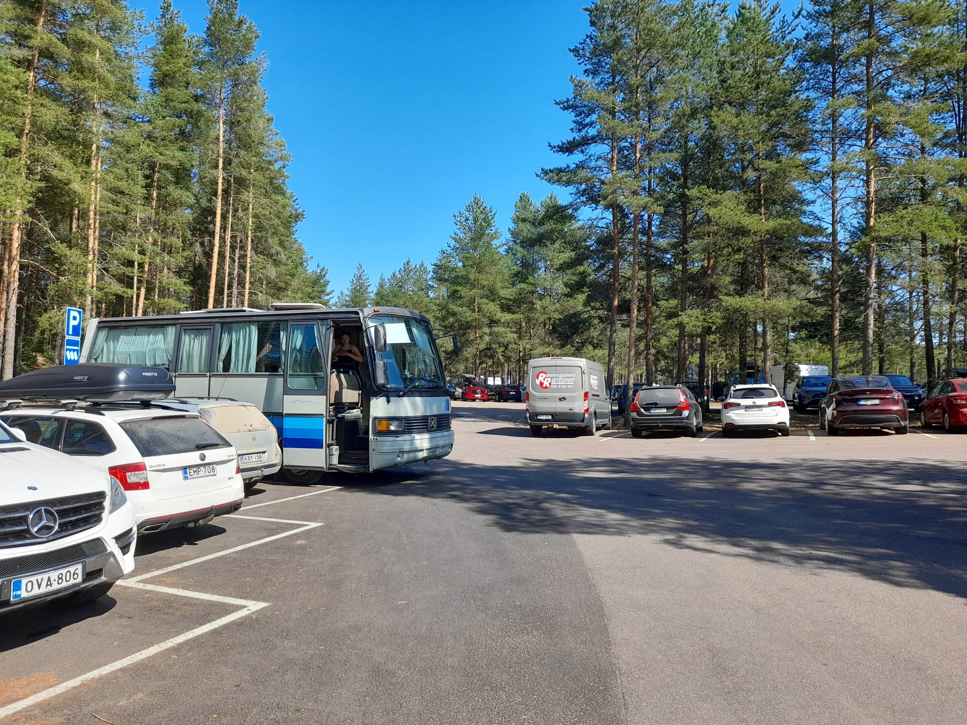 Raahen raviradalta kaasu pohjaan ja Kalajoelle uimaan. Ensin käytiin tuontitukussa pyörimässä. Nyt olemme jukuparkin parkkipaikalla ja ei tarvitse olla yksin. Joka ruutu on täysi ja sakottajat kiertävät. Ainakin kahdessa autossa on laput lasissa. Pysäköinti on muuttunut. 8h kiekolla nykyisin ja jos ei ole auto ruudussa ,tulee sakot.