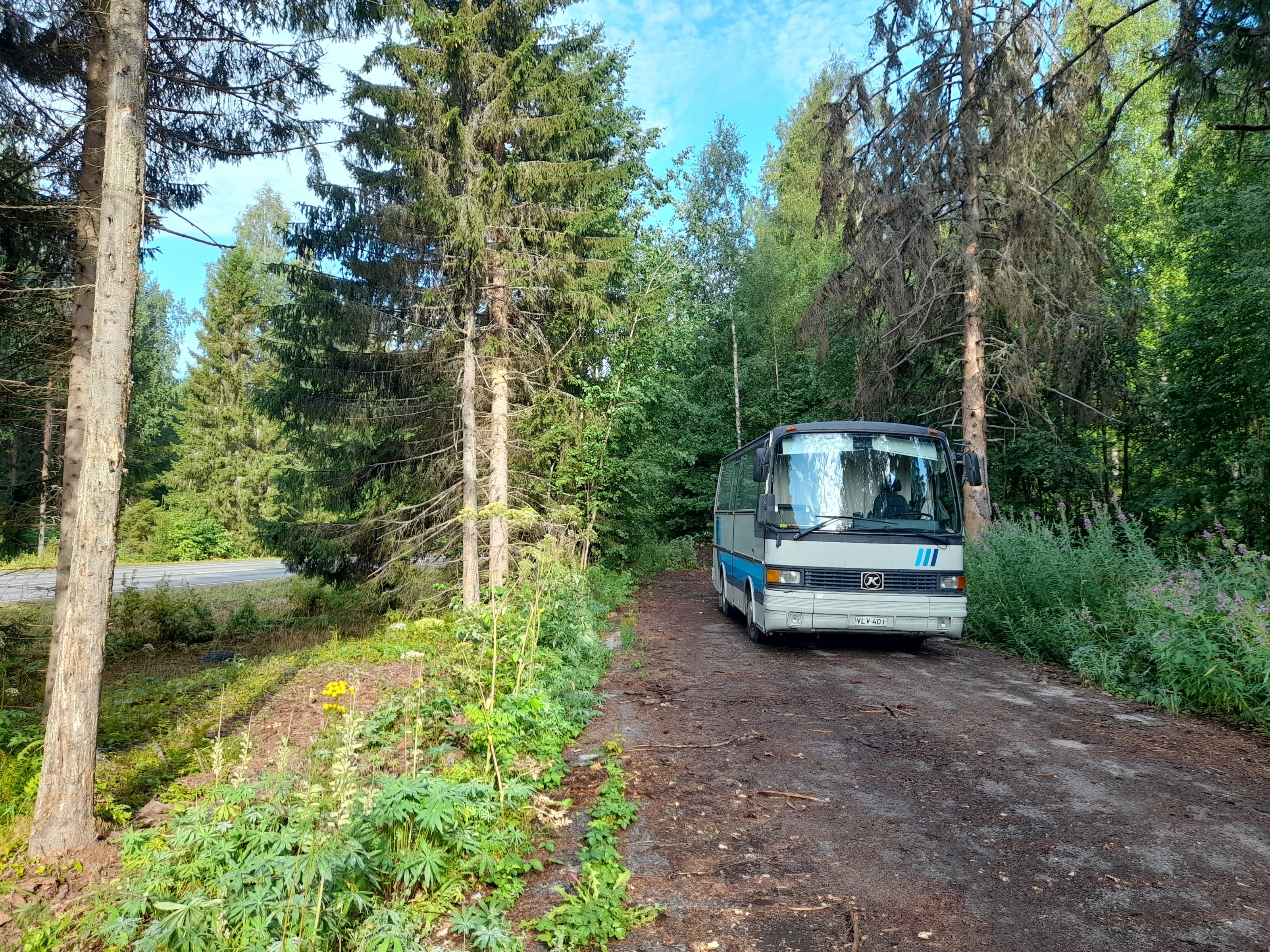 Kolilta päätimme lähteä kotia kohti. Jokapuolella oli vesisadetta ja pari viikkoa oltiin oltu reissussa , porukka tuumasi että lähdetään kotiin. Puolangan kohdalla tuli vielä idea lähteä katsomaan yhtä myynnissä olevaa Vanajaa. Sehän on matkan varrella. Ei muuten sitten ollutkaan. Auton piti olla Pudasjärvestä vähän etelään. Loppujen lopuksi löysimme auton jostain Taivalkosken ja Suomussalmen puolestavälistä keskeltä ei mitään. Eipä ole tullut ajeltua noin pieniä ja huonoja teitä bussilla. Aikamoinen mutka tuli matkaan.
